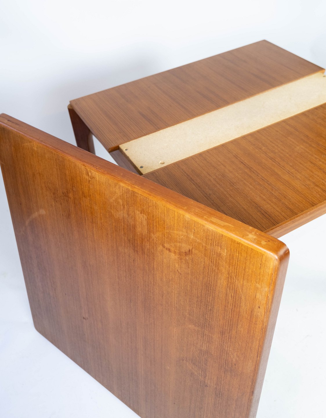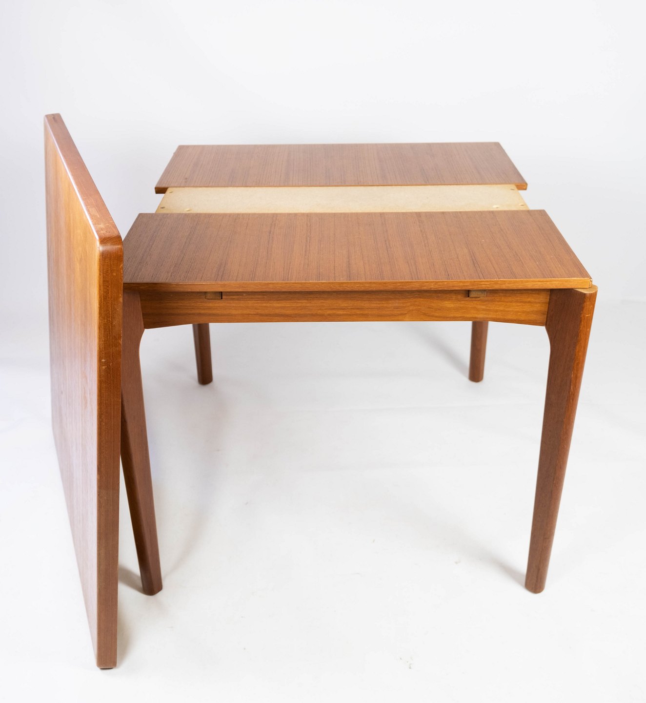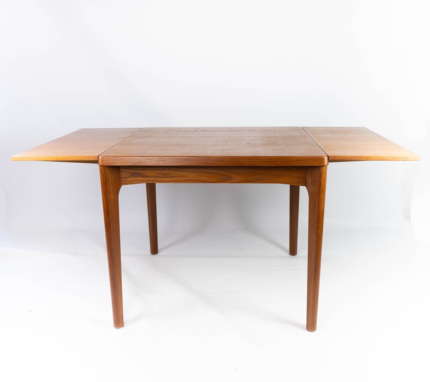 Spisebord med udtræk i teak designe af Henning Kjærnulf fra 1960erne. Bordet er i flot brugt stand.