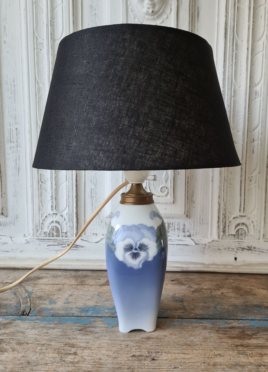 Royal Copenhagen Art Nouveau bordlampe dekoret med stedmoderblomst