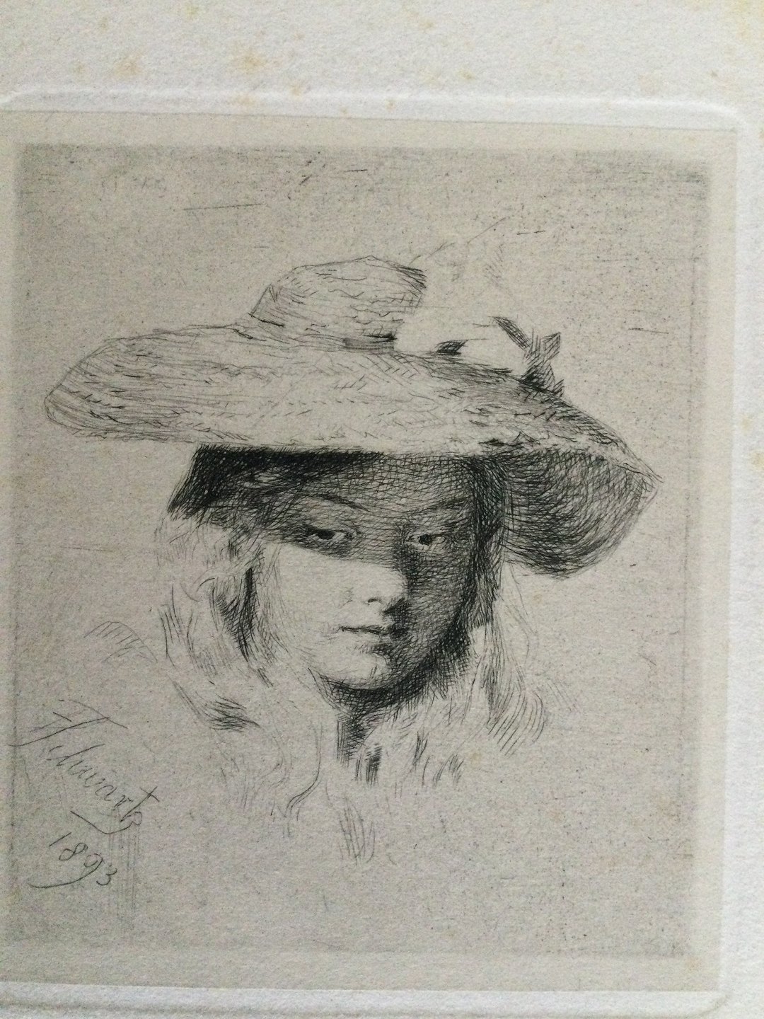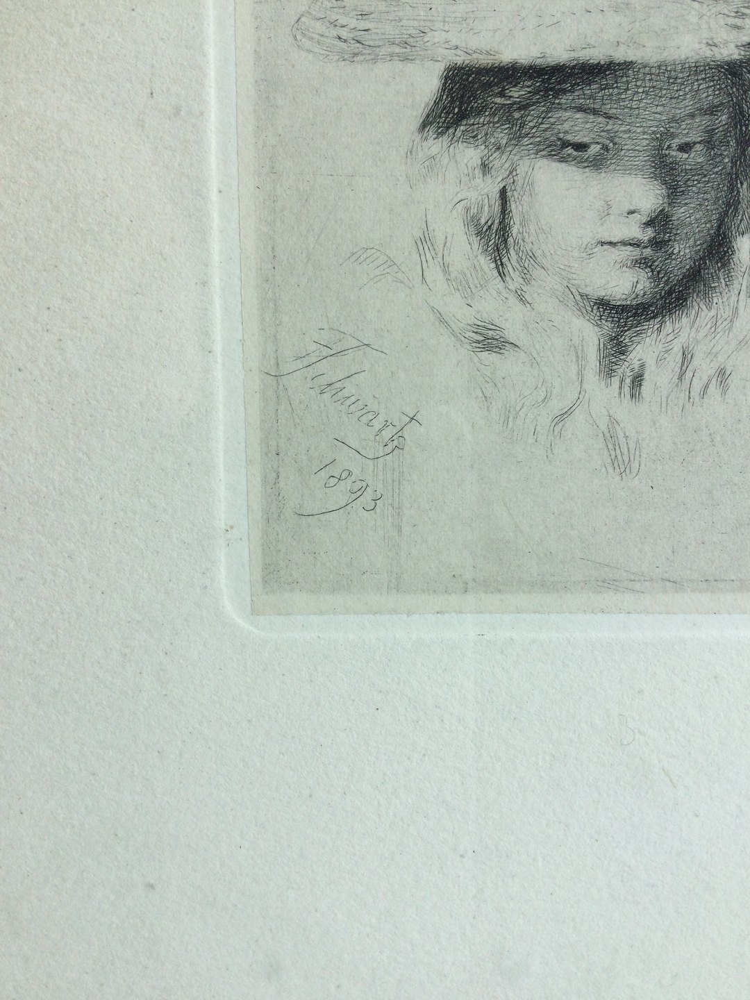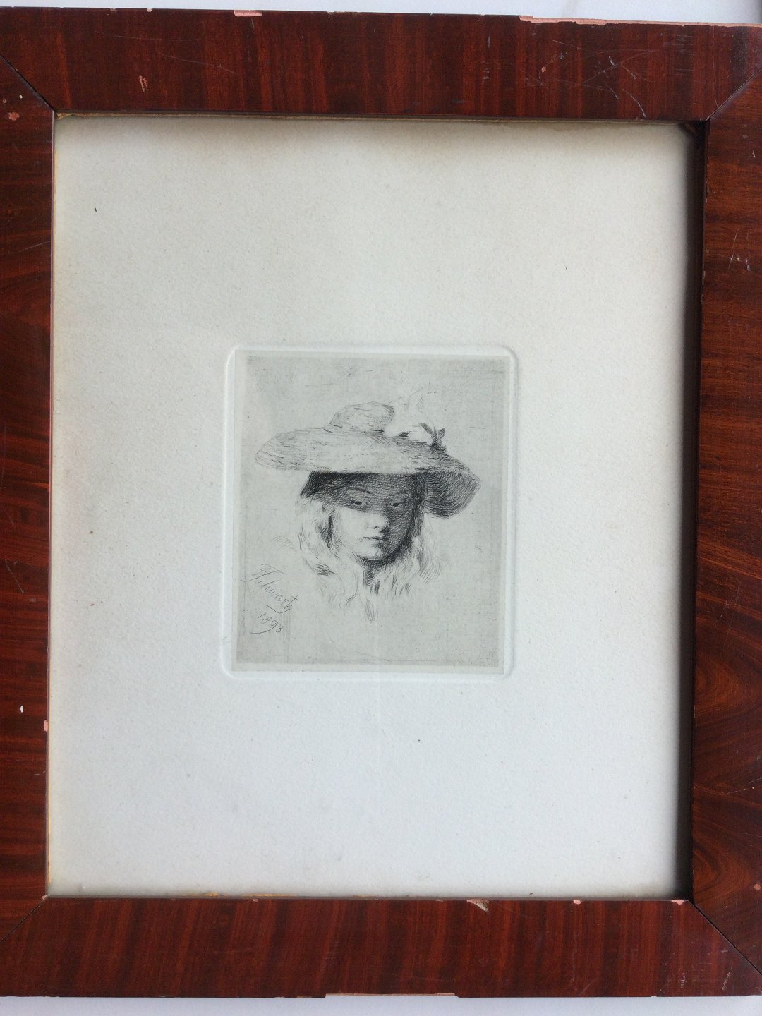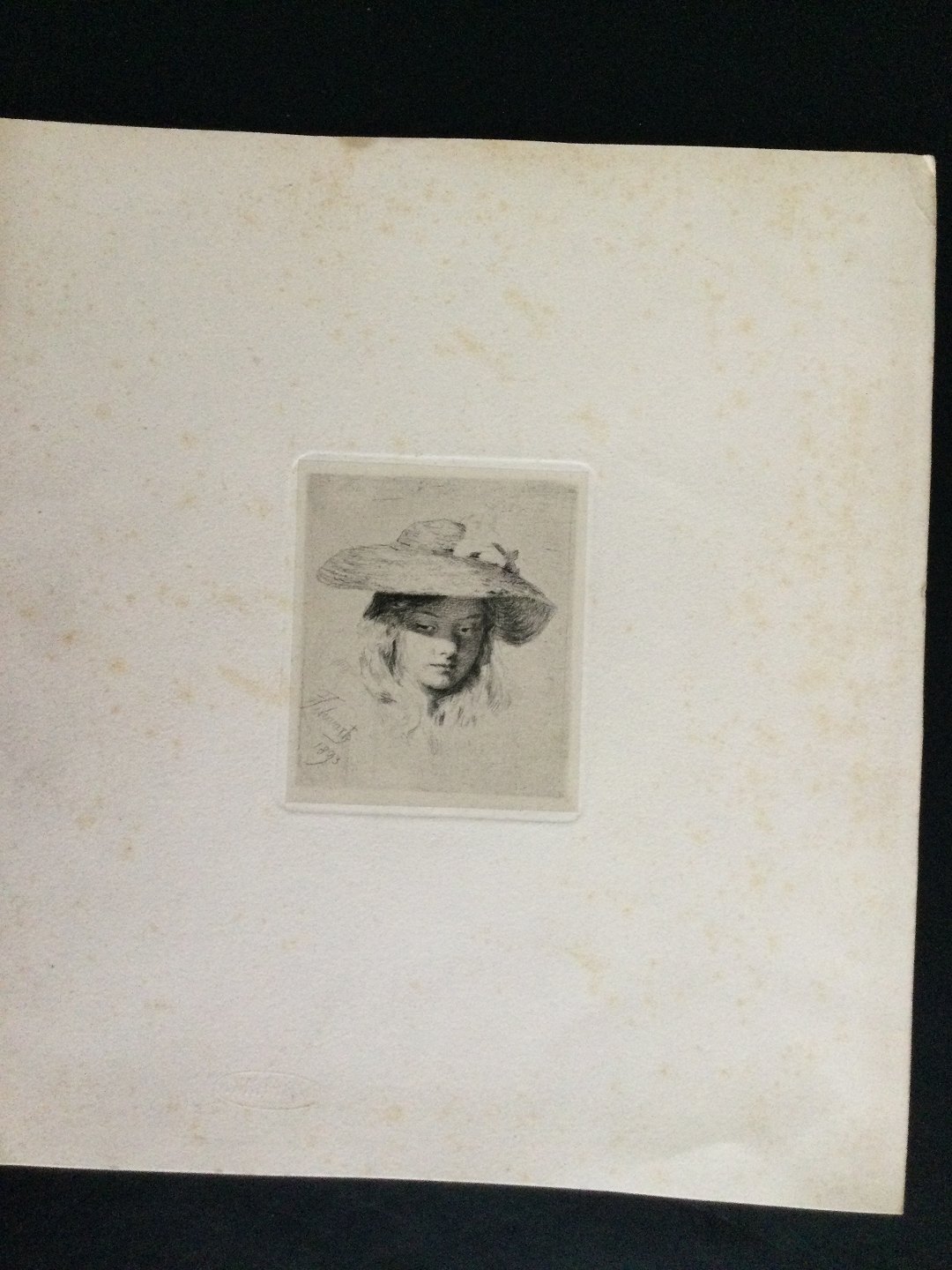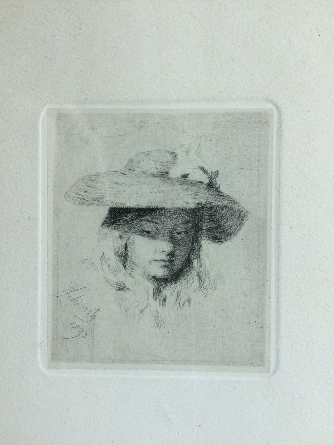 Text available in Danish: Radering af Frans Schwartz - En ung pige med stråhat 1893 , Opus 35.