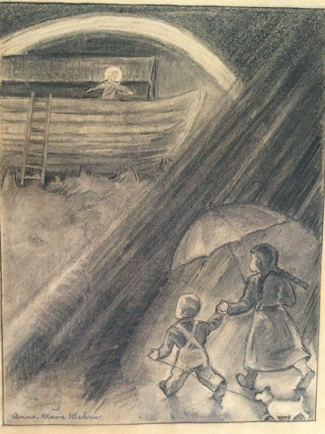 Tegning af Anne Marie Mehrn - Noa i Arken.