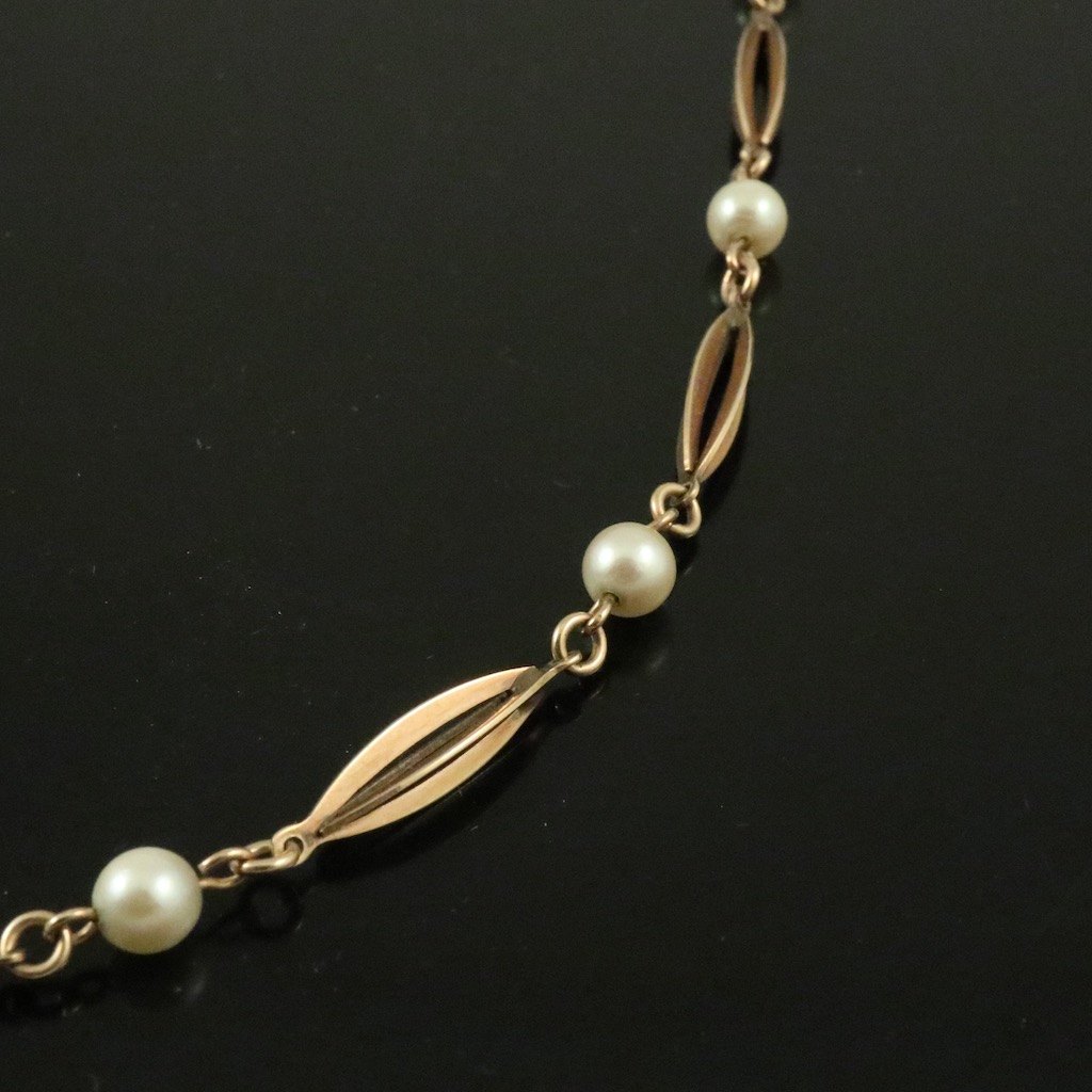 Hermann Siersbøl. Halskæde i 14k guld med perler. 1960erne.