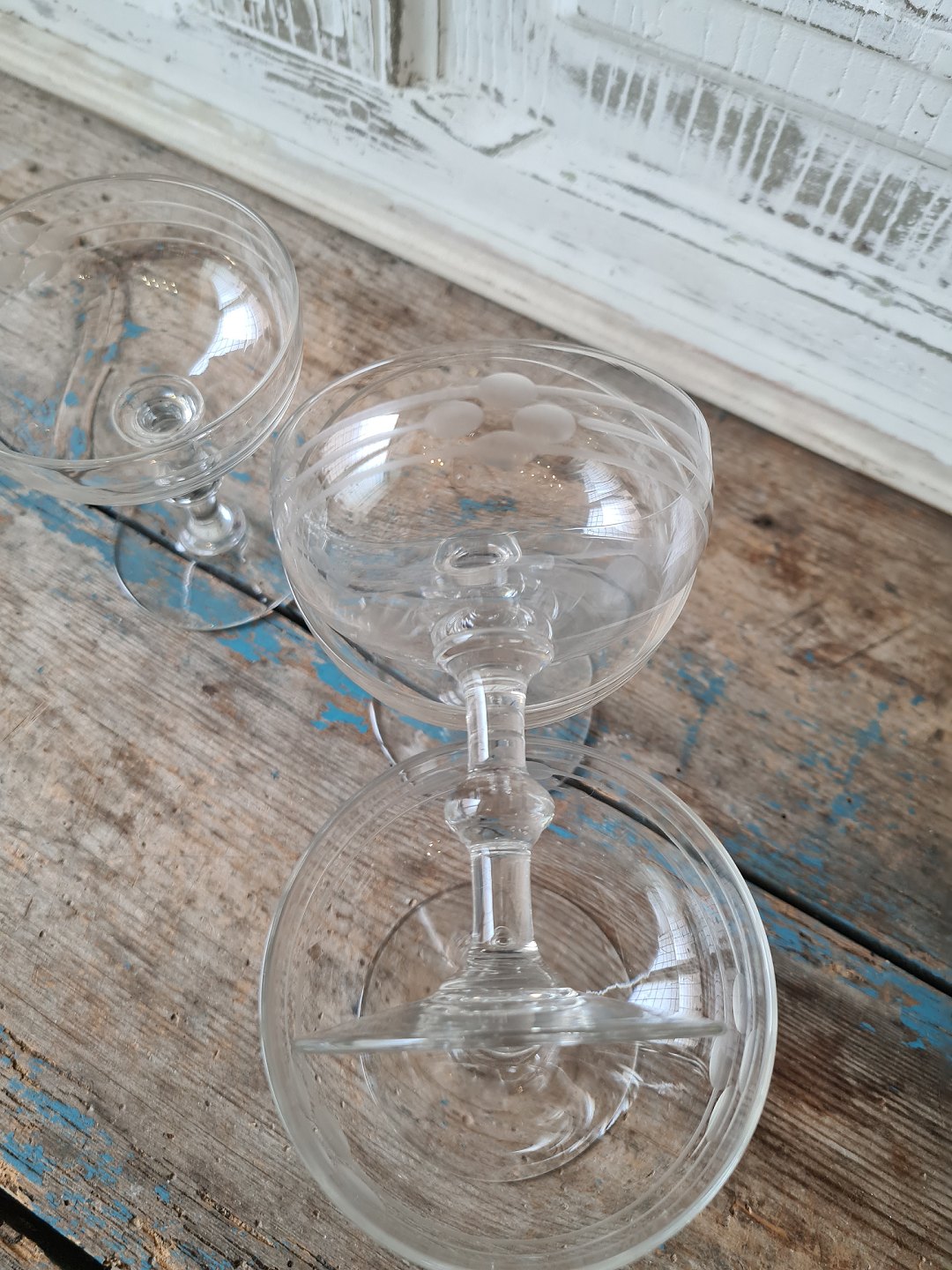 Sæt på 4 franske champagne skåle med smukke slibninger