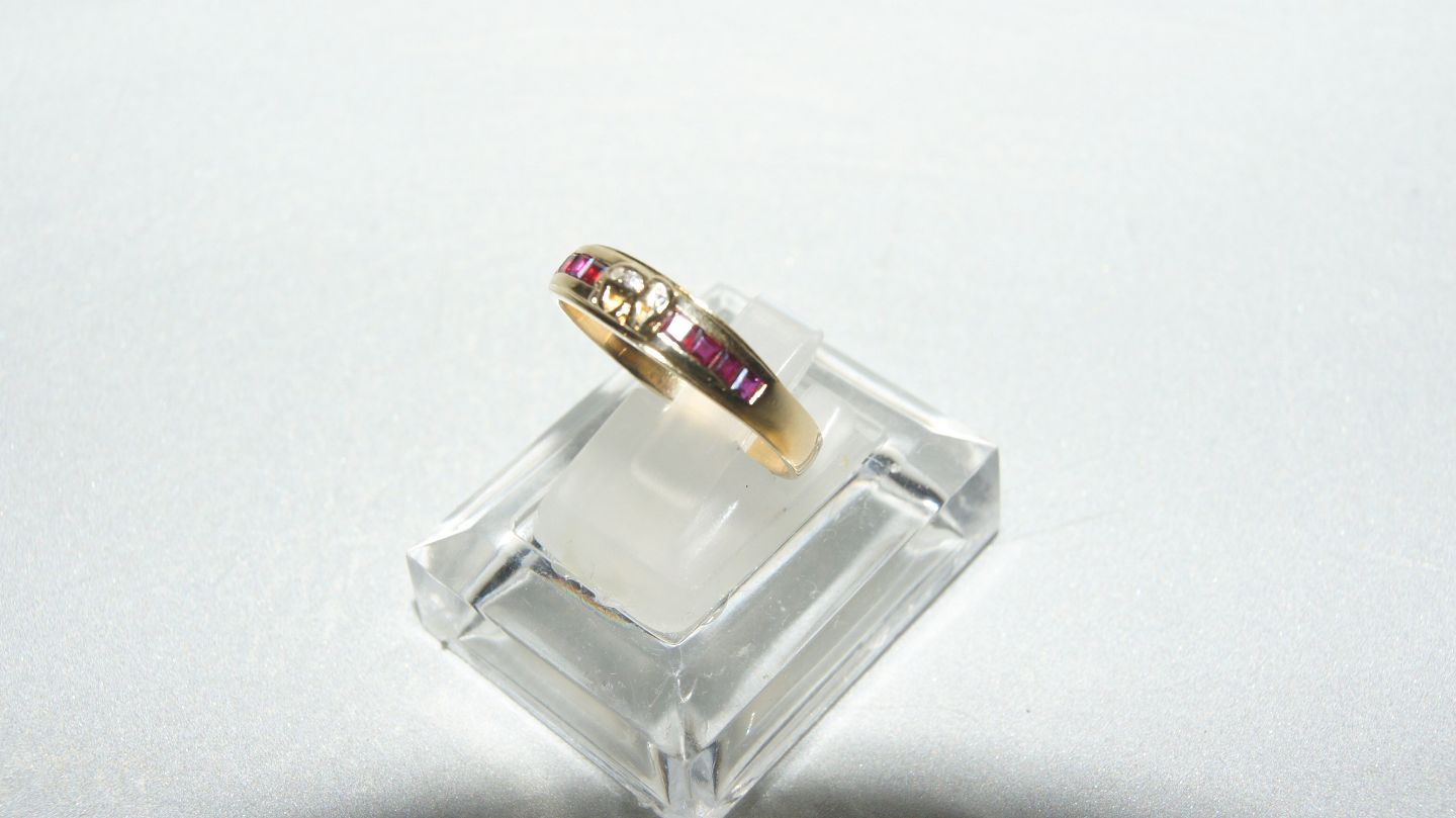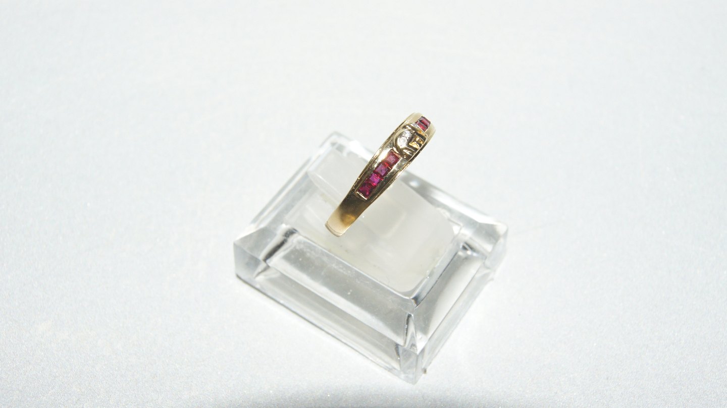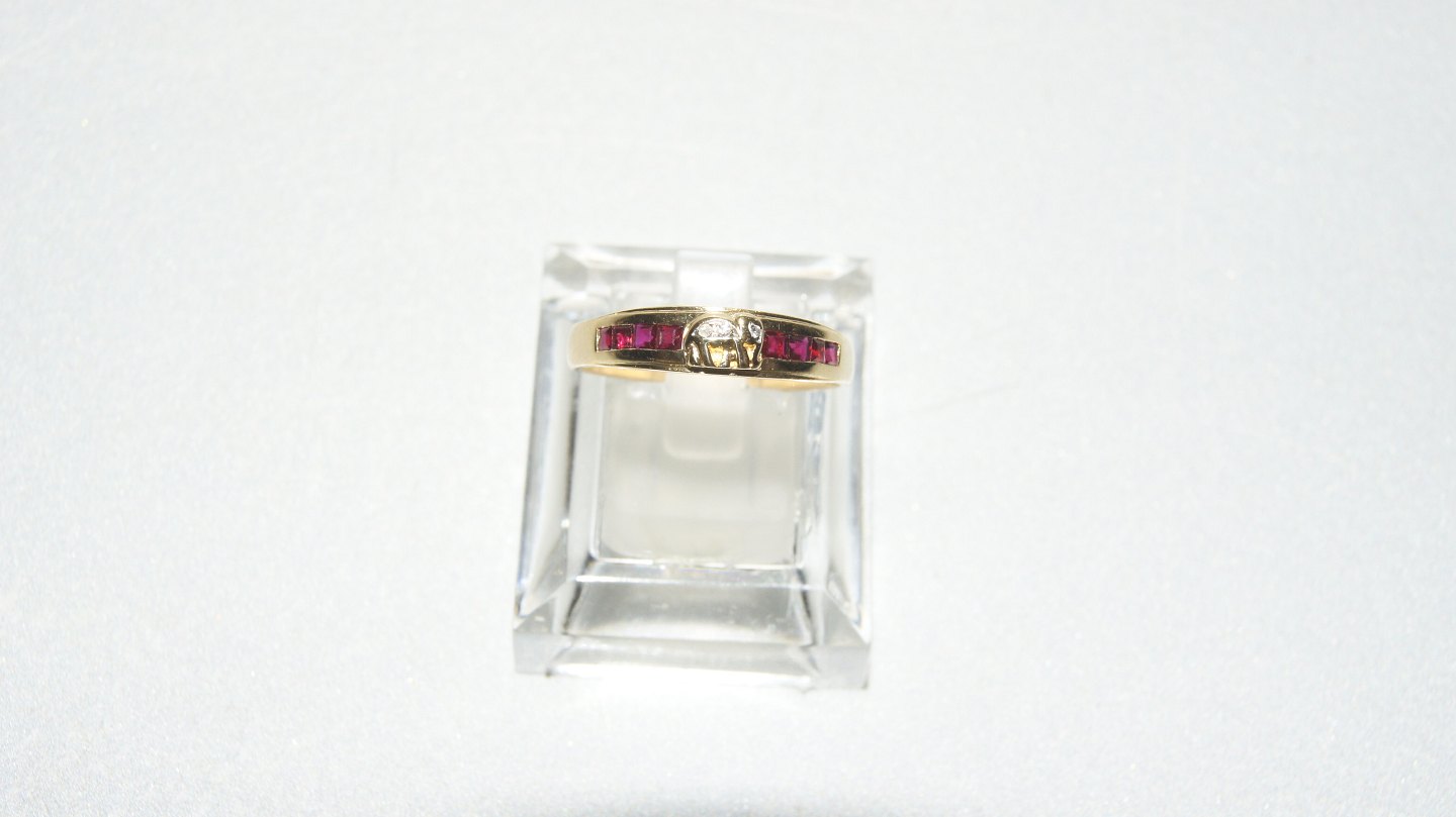Damering med diamanter og røde rubiner i 18 karat guld