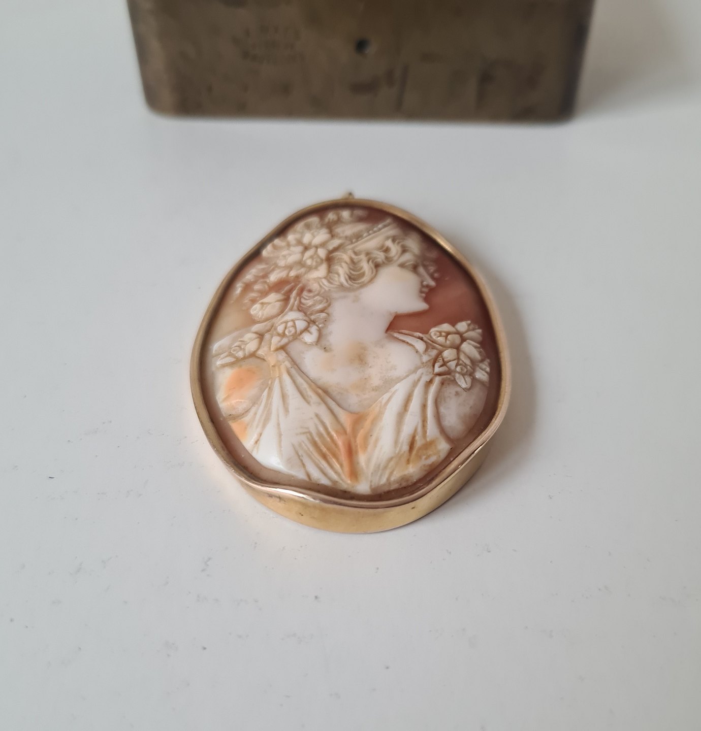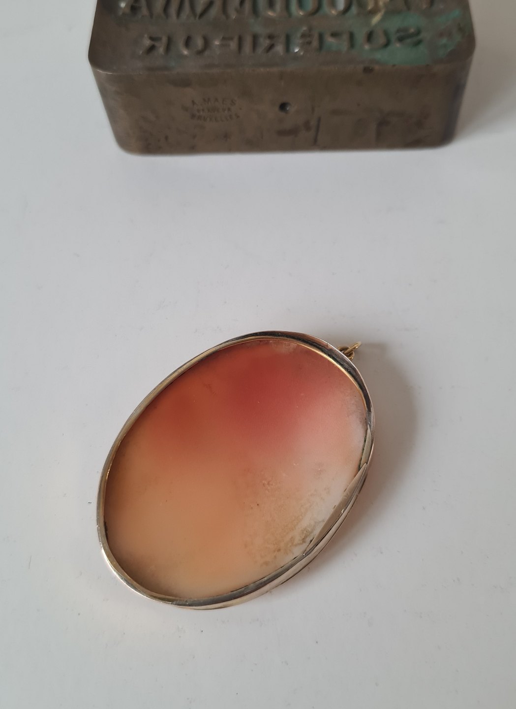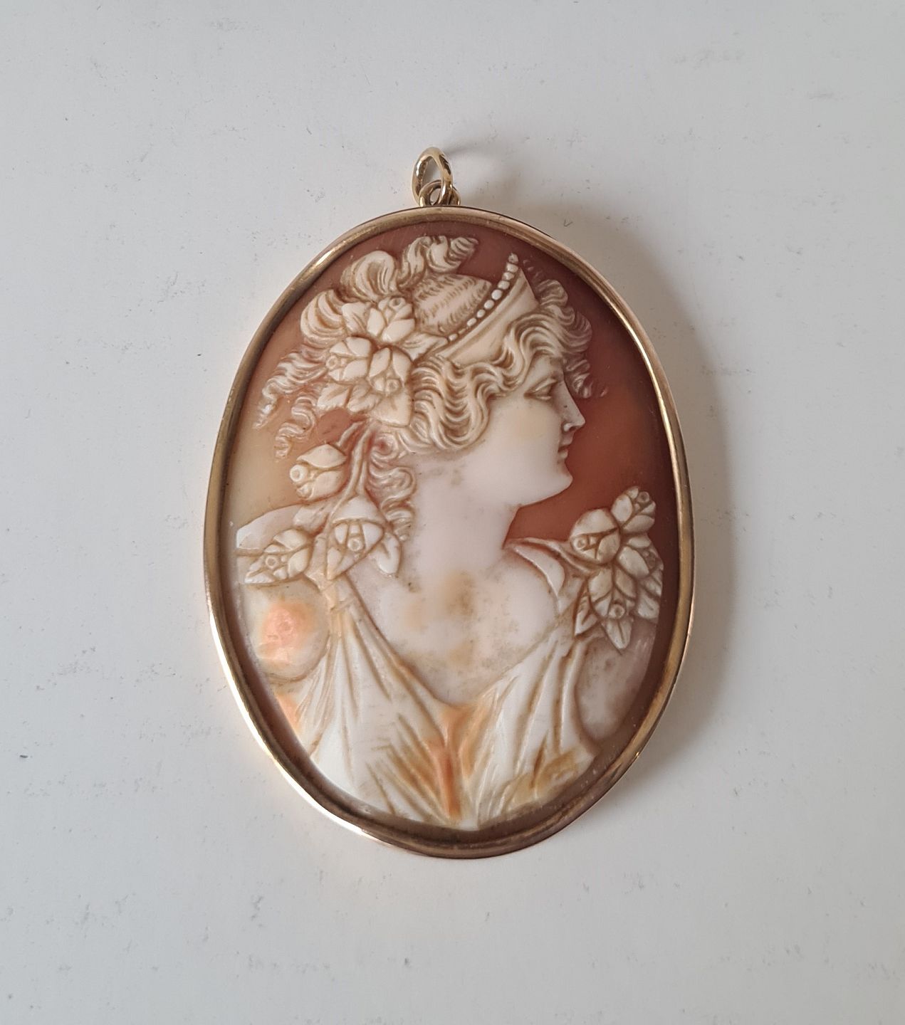 1800s large cam pendant set in 8 kt gold. Very beautifully wound. Appears unstamped, but acid tested to a quantity of 8 kt. M