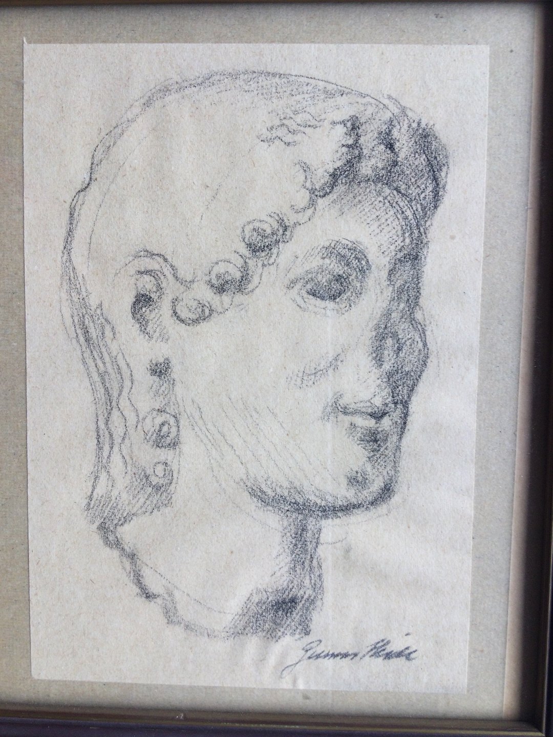 Akademitegning af græsk hoved.