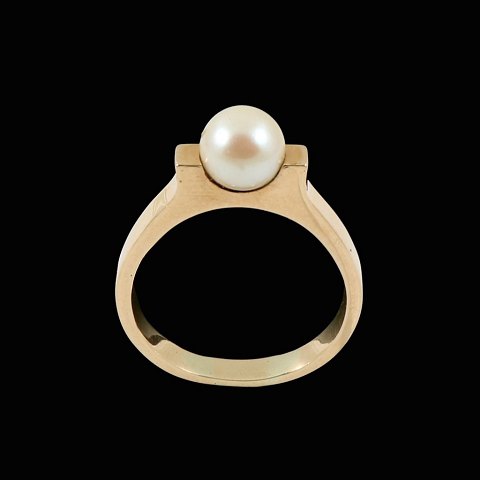 Jean Laglye - Kbh. Ring i 14k guld med Perle. 1960erne.