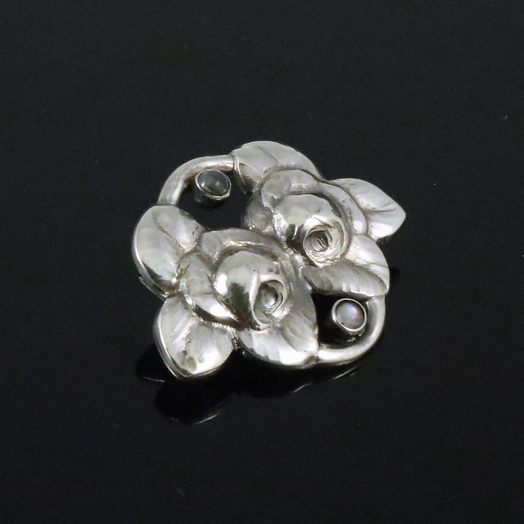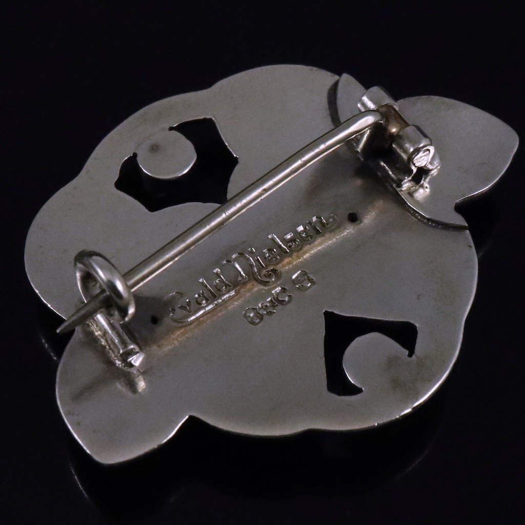 Evald Nielsen 1879 - 1958. Skønvirke Broche i sølv med månesten.