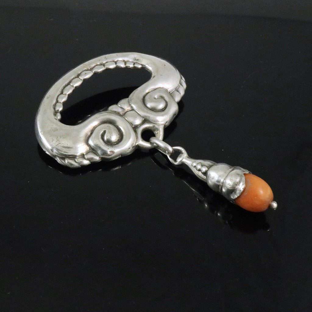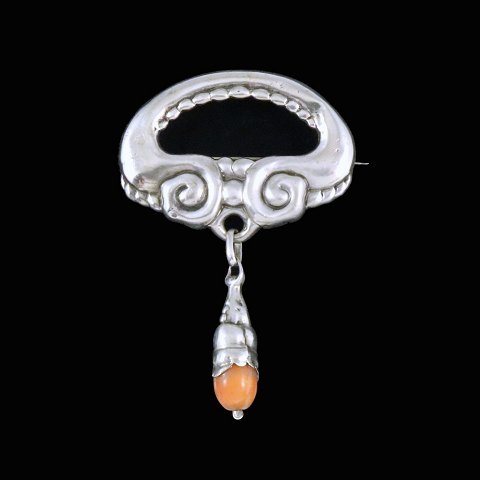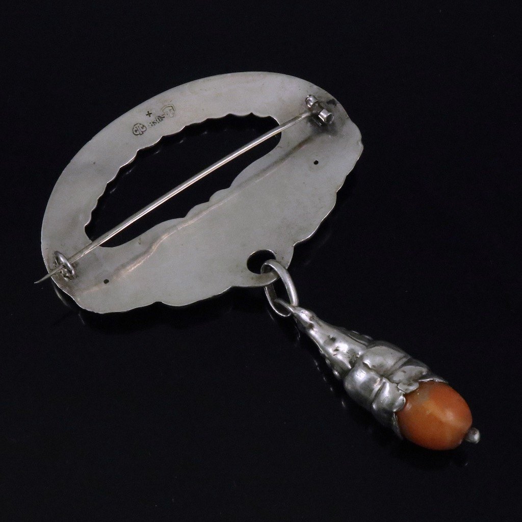 Grann & Laglye. Skønvirke Broche i sølv med rav.