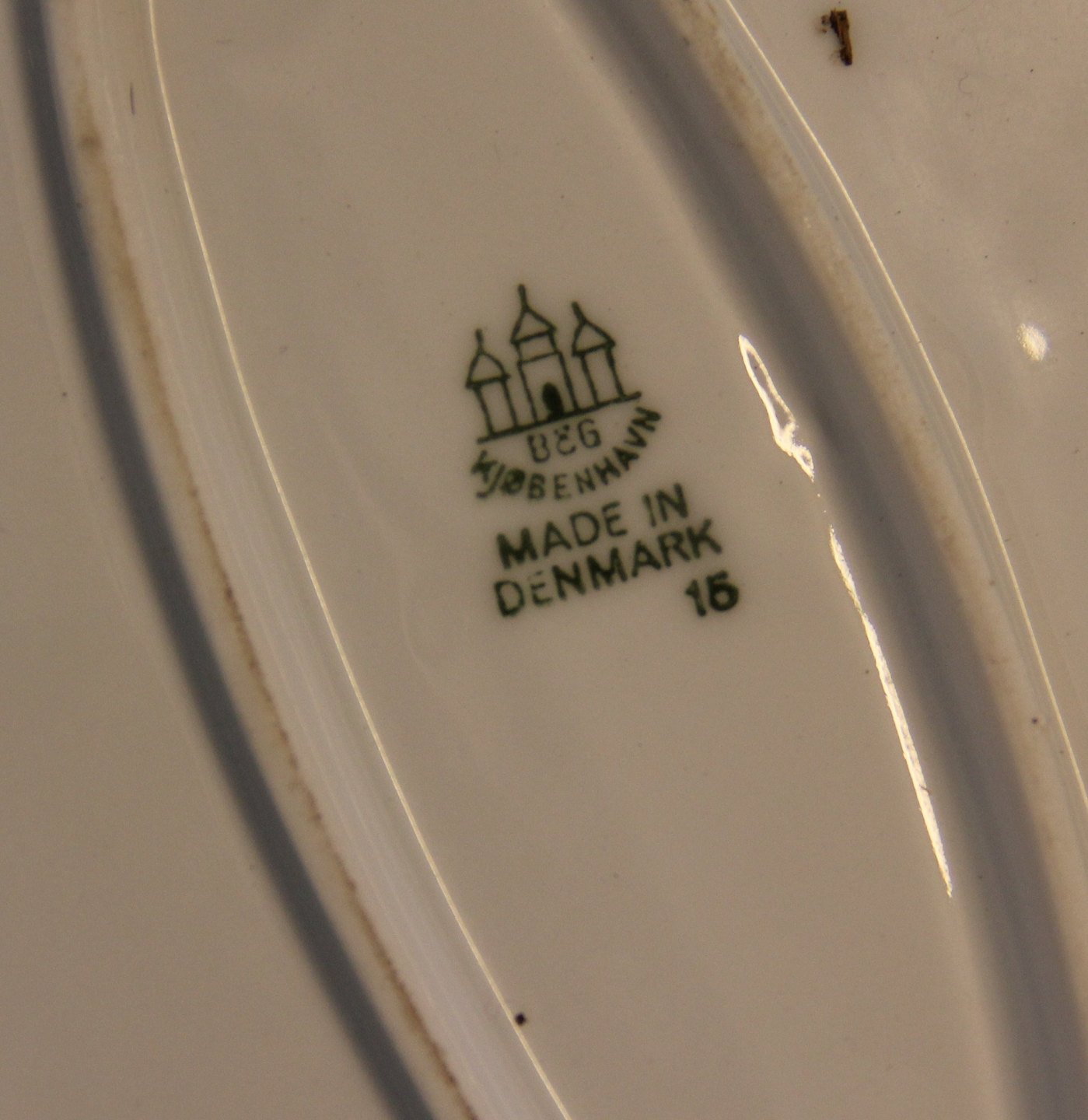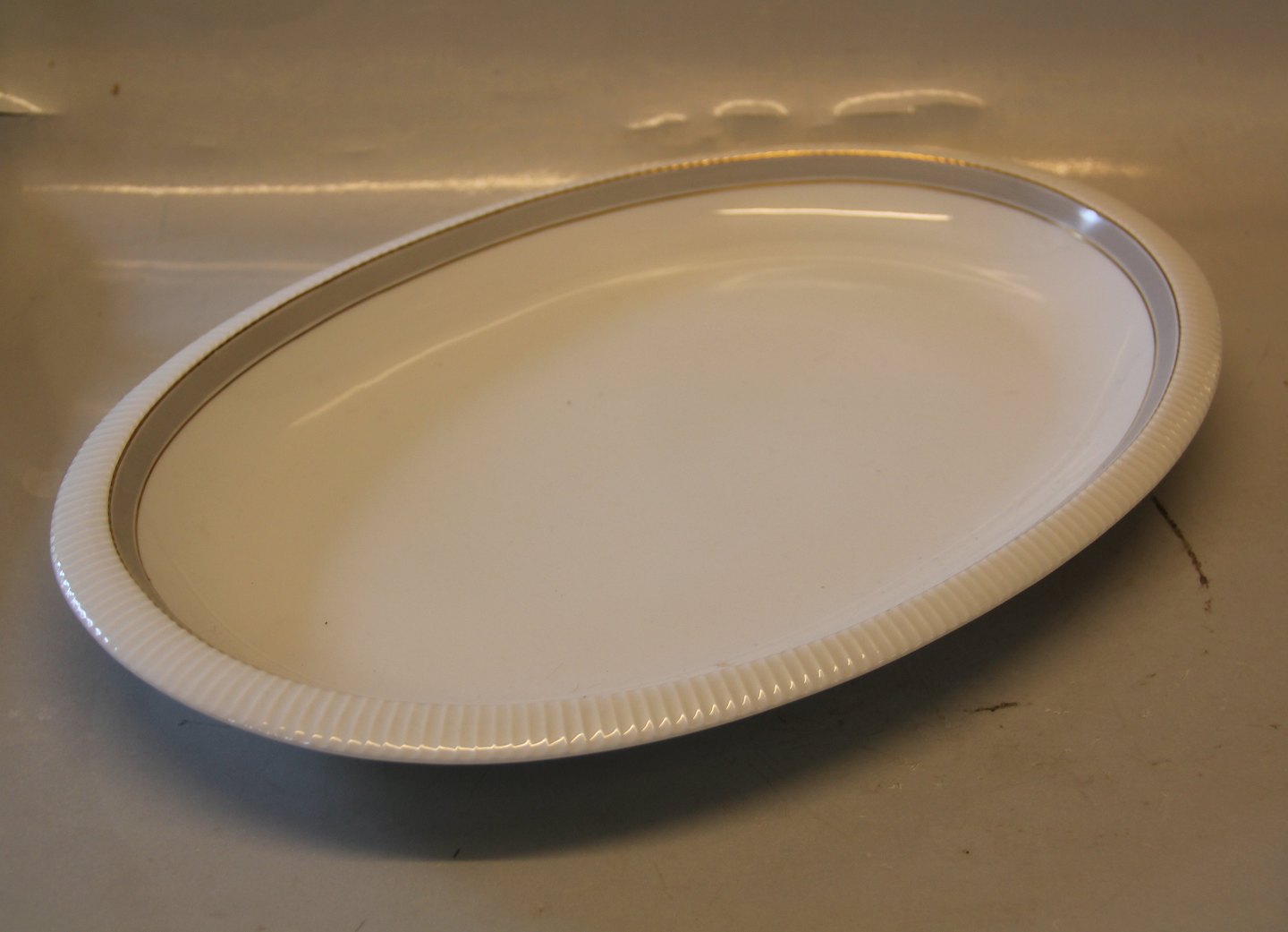 015 Large platter, oval 41 cm (315) Norma White base, ribbed gold rim, broad grey band, form 674 designed by Sigward Bernadotte.