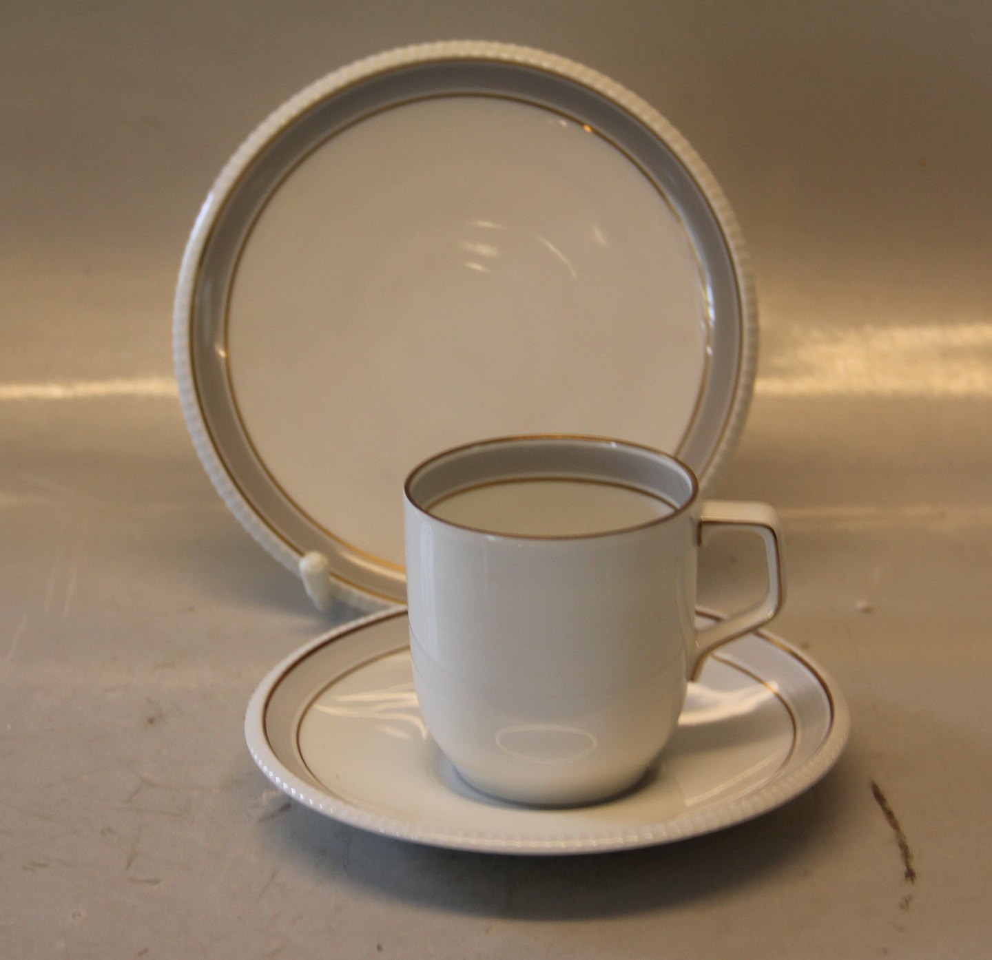 028 a Kagetallerken 15,5 cm (306) Norma, Riflet kant guld og bred grå kant, form 674 formgivet af Sigward Bernadotte.