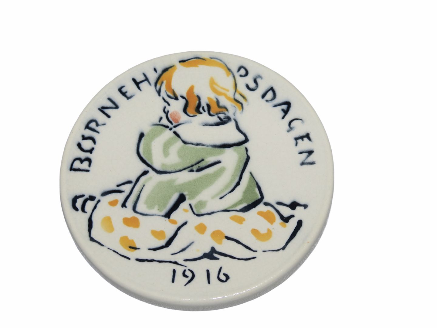 Aluminia Børnehjælpsdagsplatte fra 1916 med en dreng.