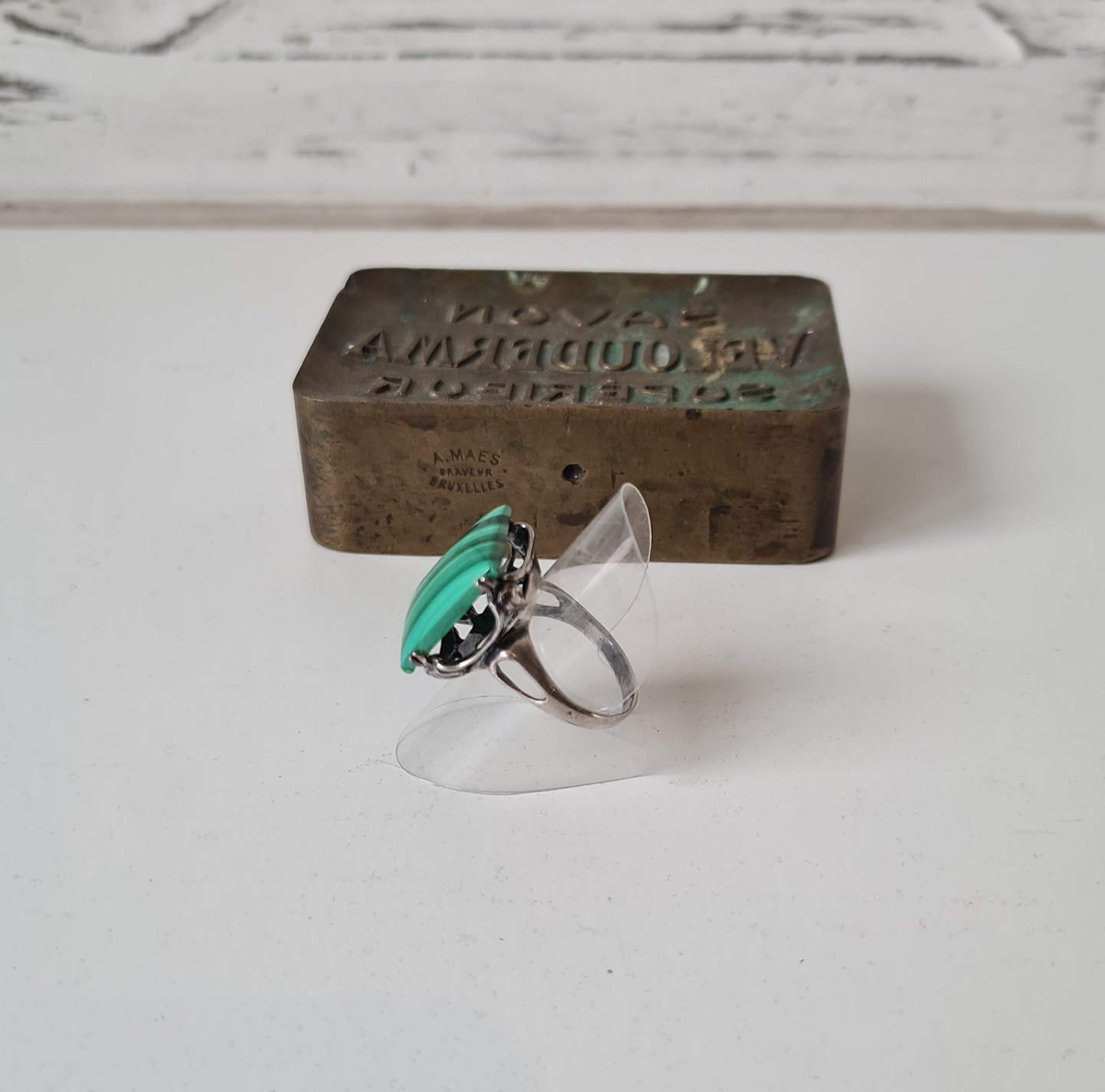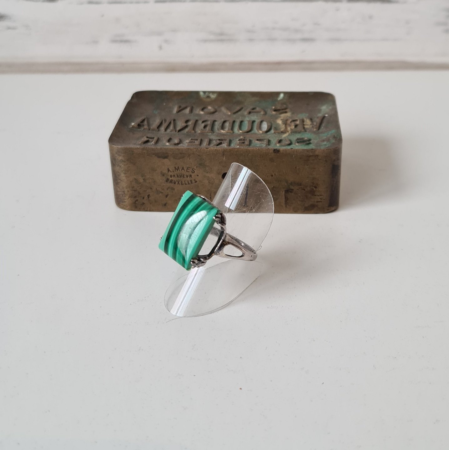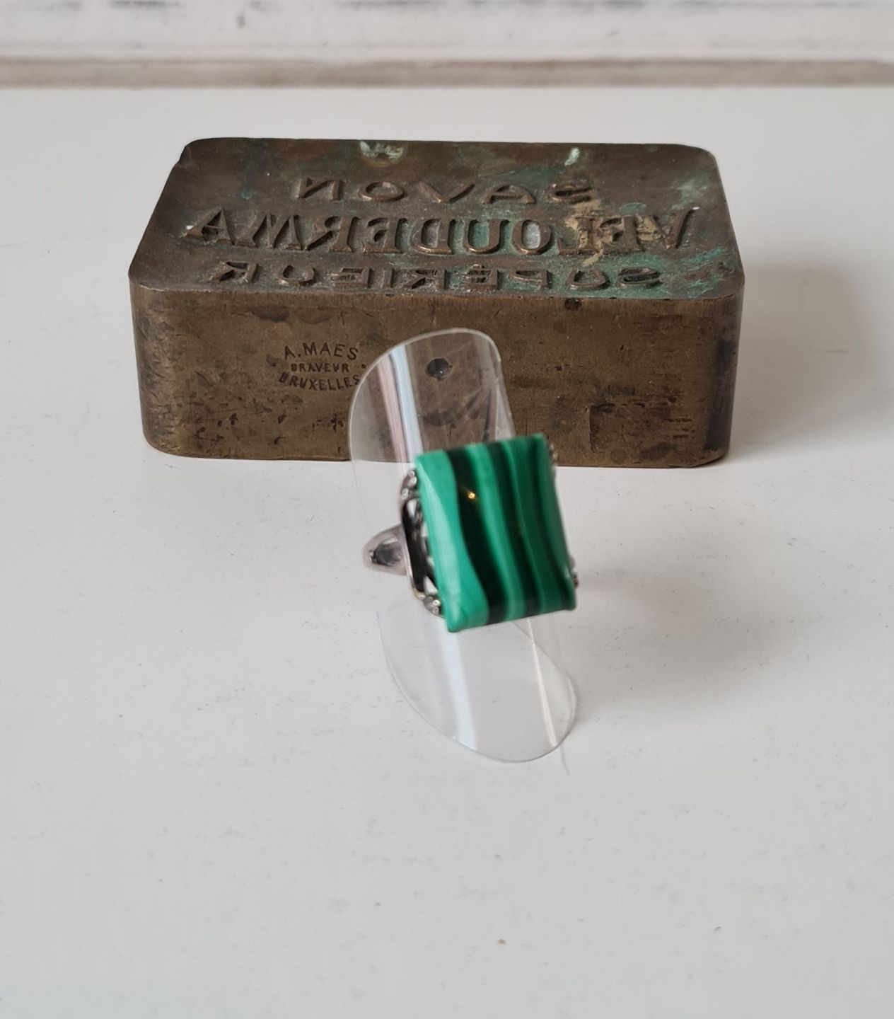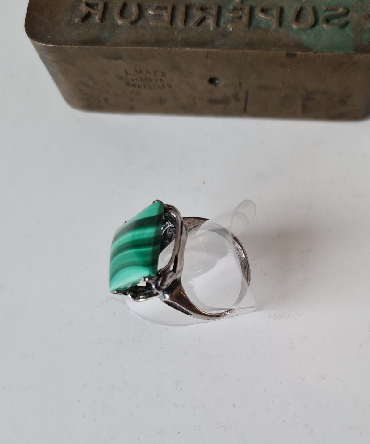 Vintage ring i sølv og malakit