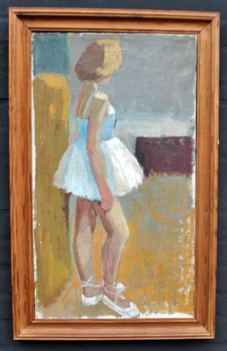 Danish artist (20th century): A ballet girl. Oil on canvas. Unsigned. 70 x 40 cm.