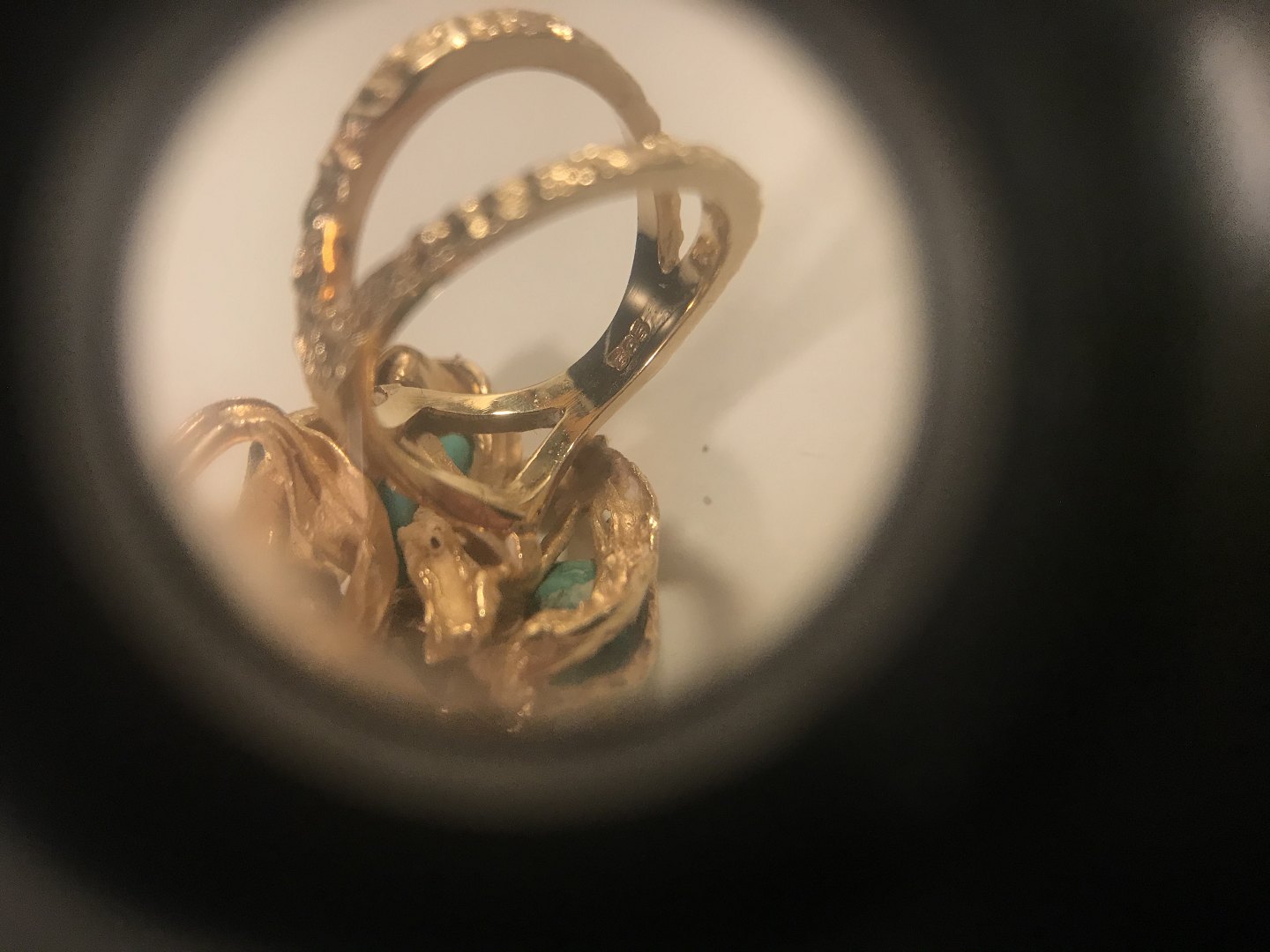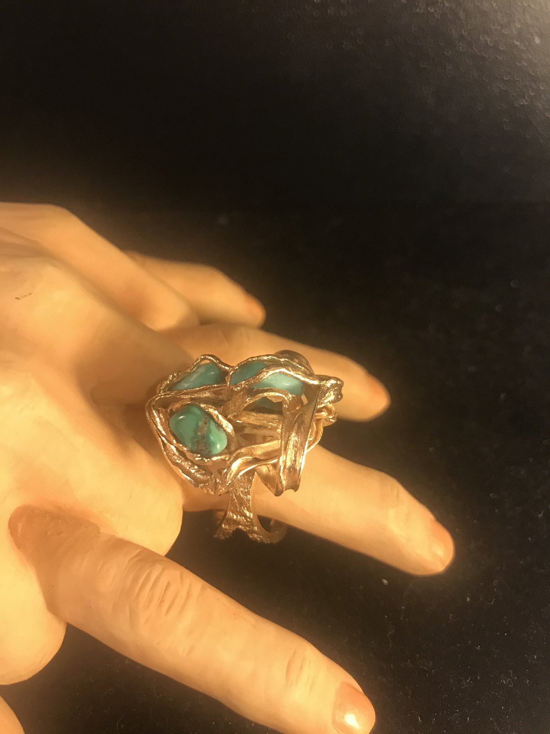 Stor unika ​Guldring med Turkiser.