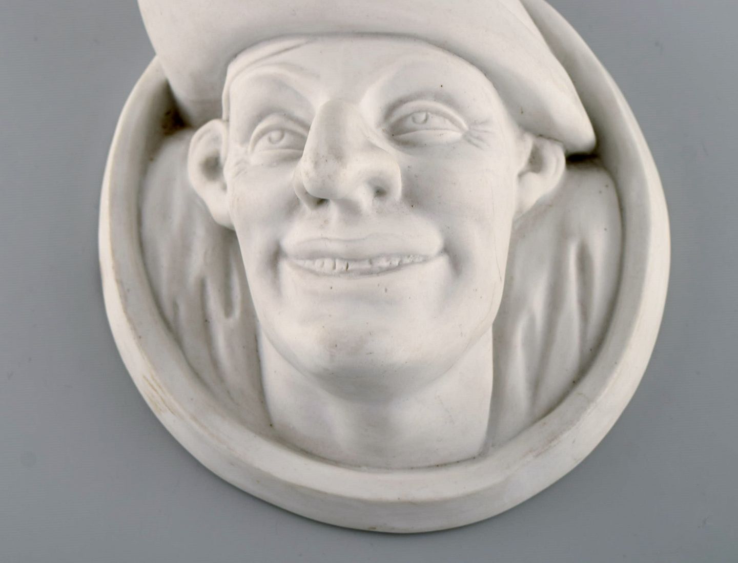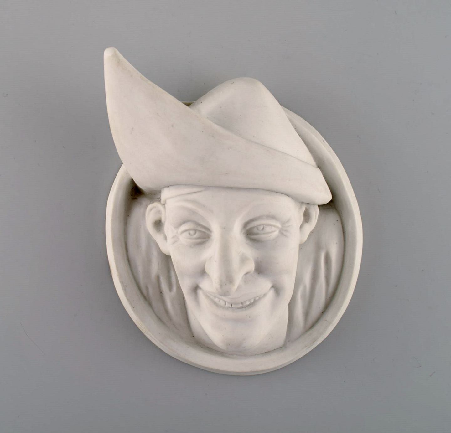 Christian Joachim (1870-1943) for Royal Copenhagen. Antique and rare wall relief in bisquit. Pierrot. Early 20th century.