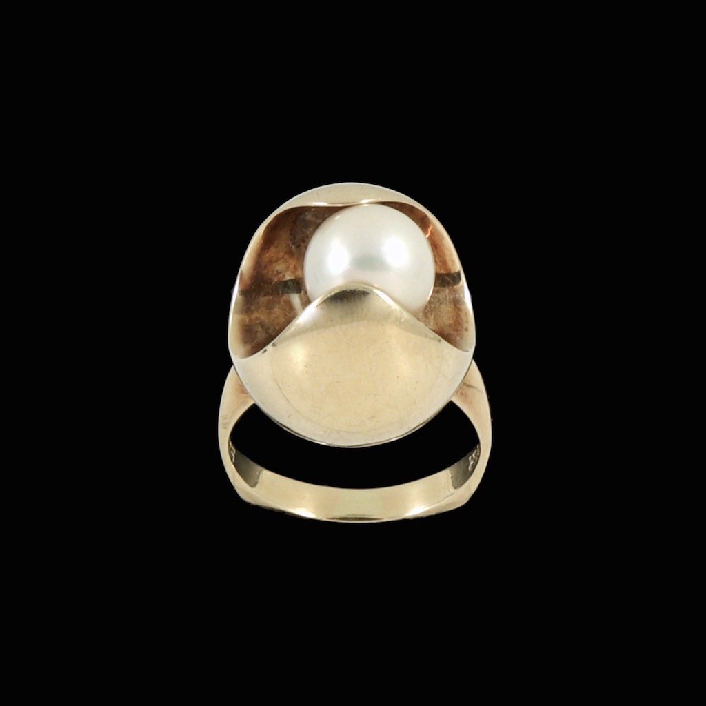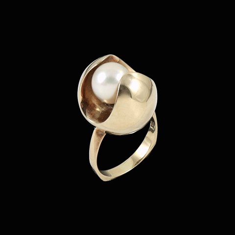 Th. Skat-Rørdam. Ring i 14k guld med perle.