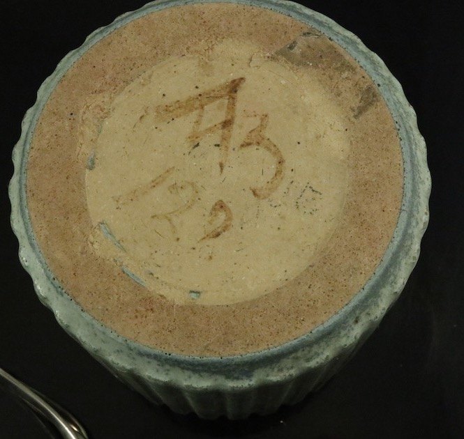 Stentøjskrukke med glasur udført hos Arne Bang (1901 - 1983). Stemplet AB, 127.