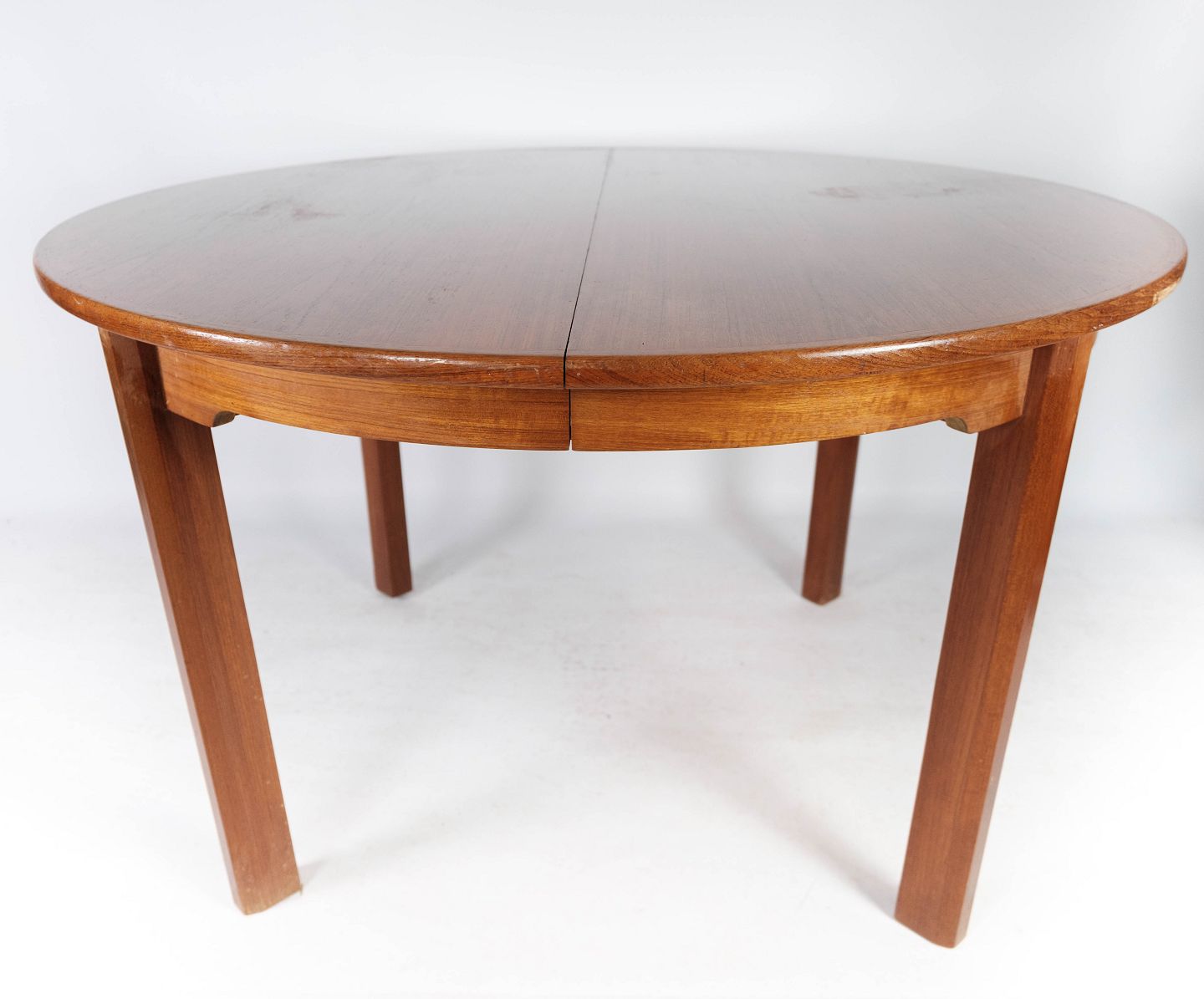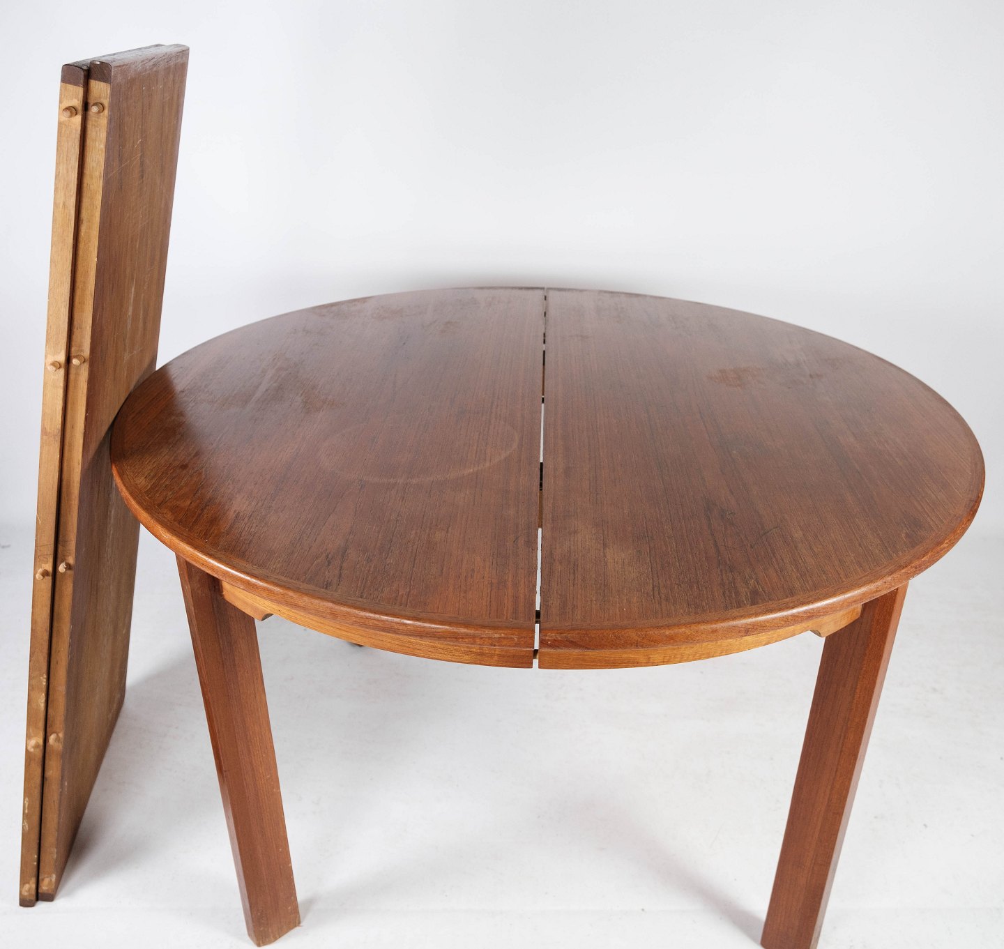 Spisebord med udtræk i teak af dansk design fra 1960erne. Bordet er i flot brugt stand.