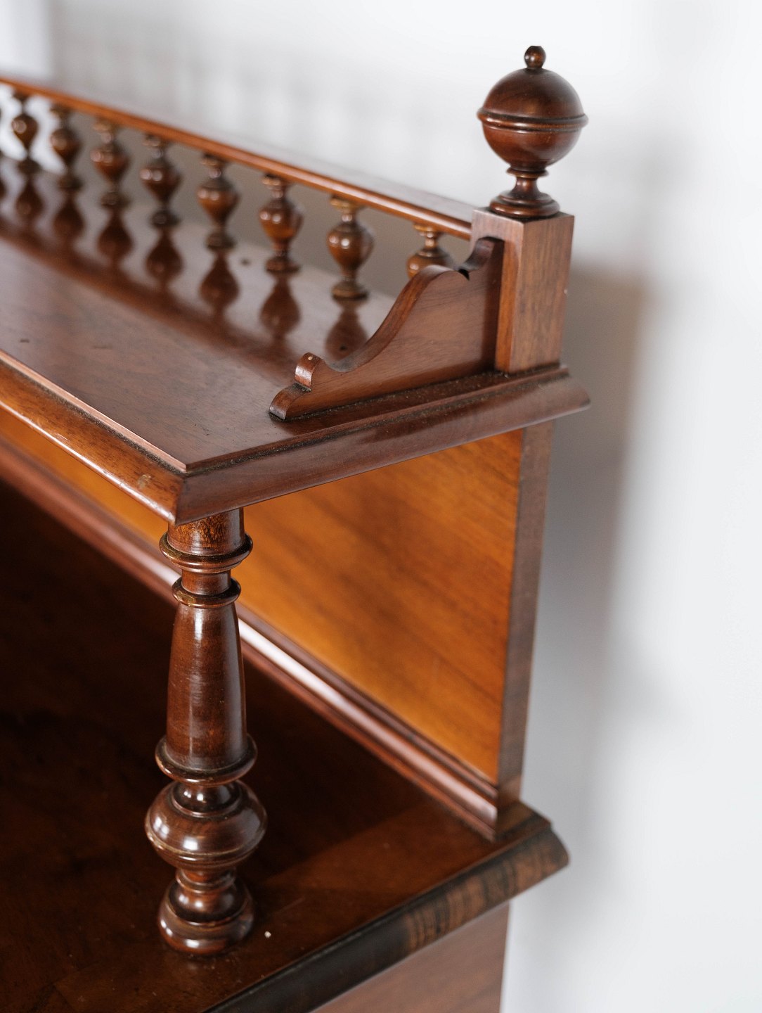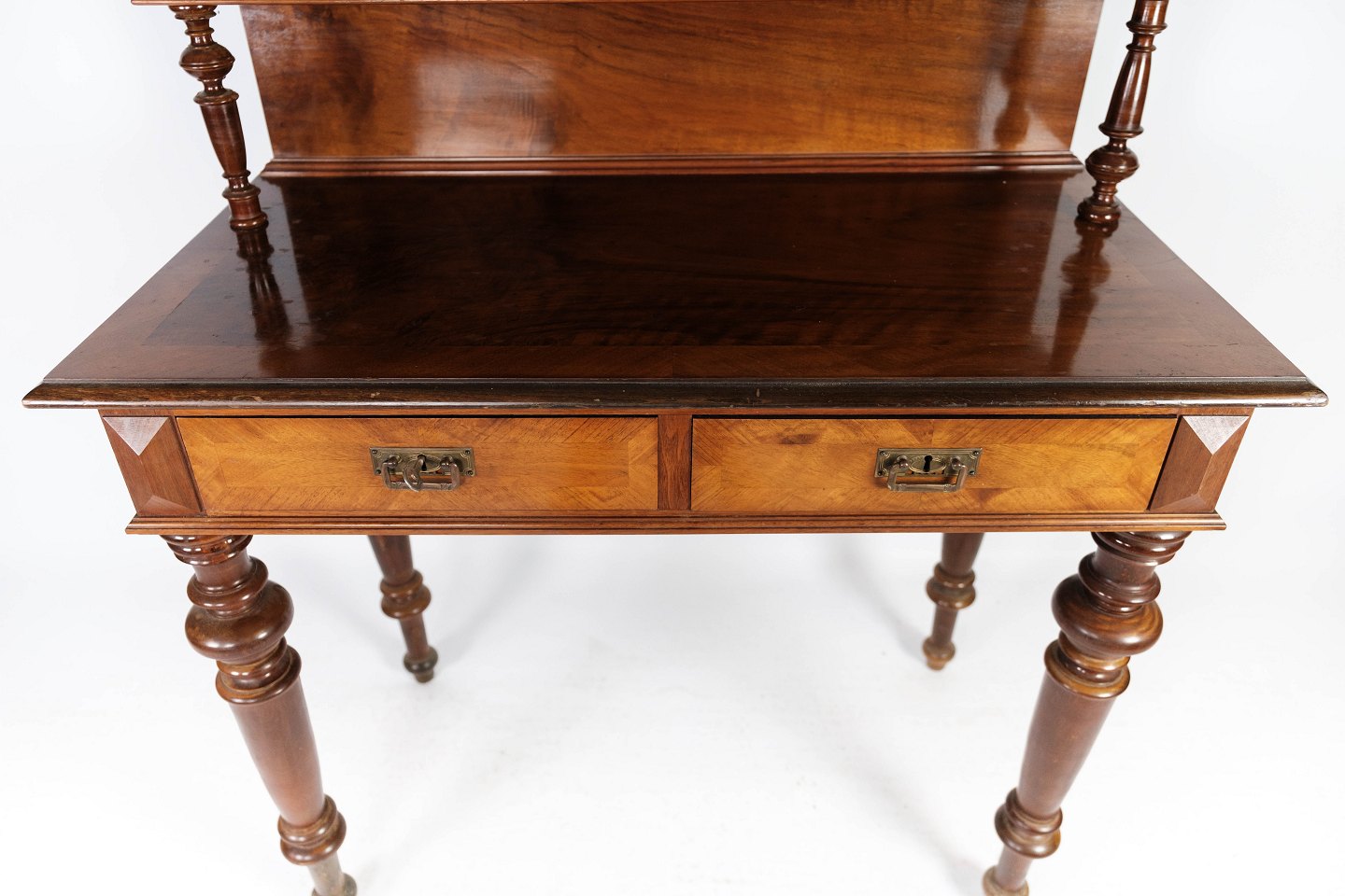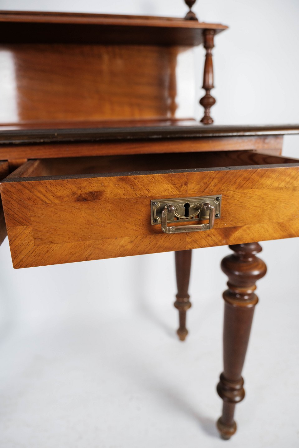 Sminkebord af nøddetræ med glas, i flot antik stand fra 1880erne.
