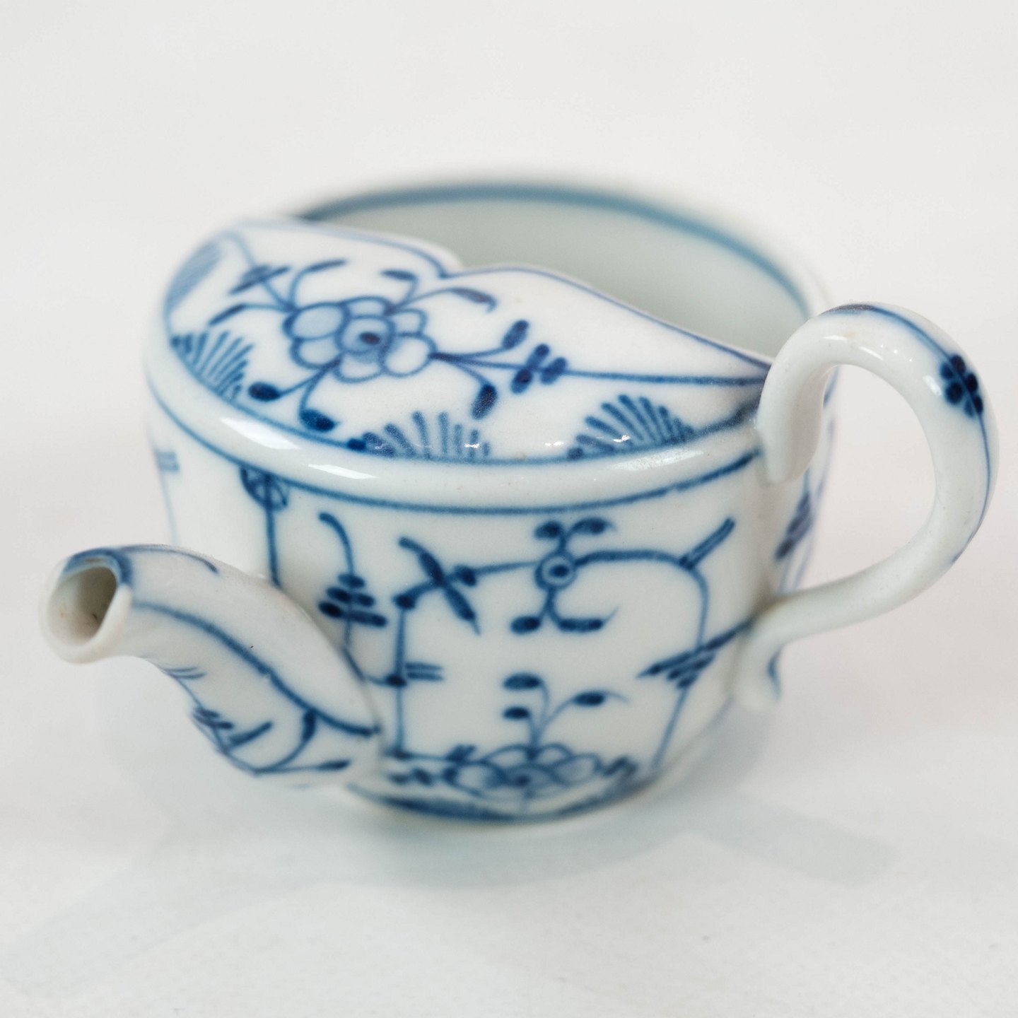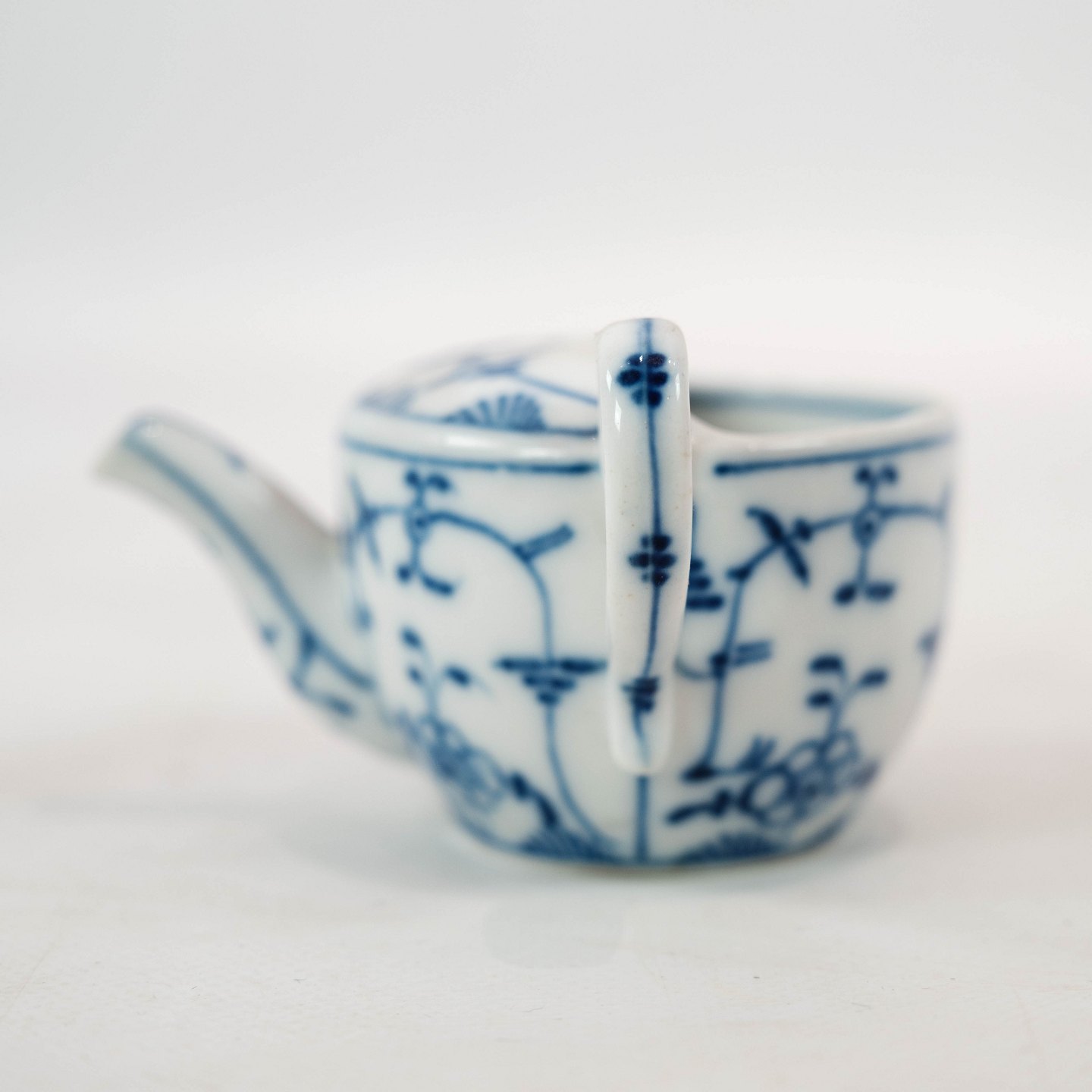 Skæg kop af tysk porcelæn dekoreret med blåt mønster.