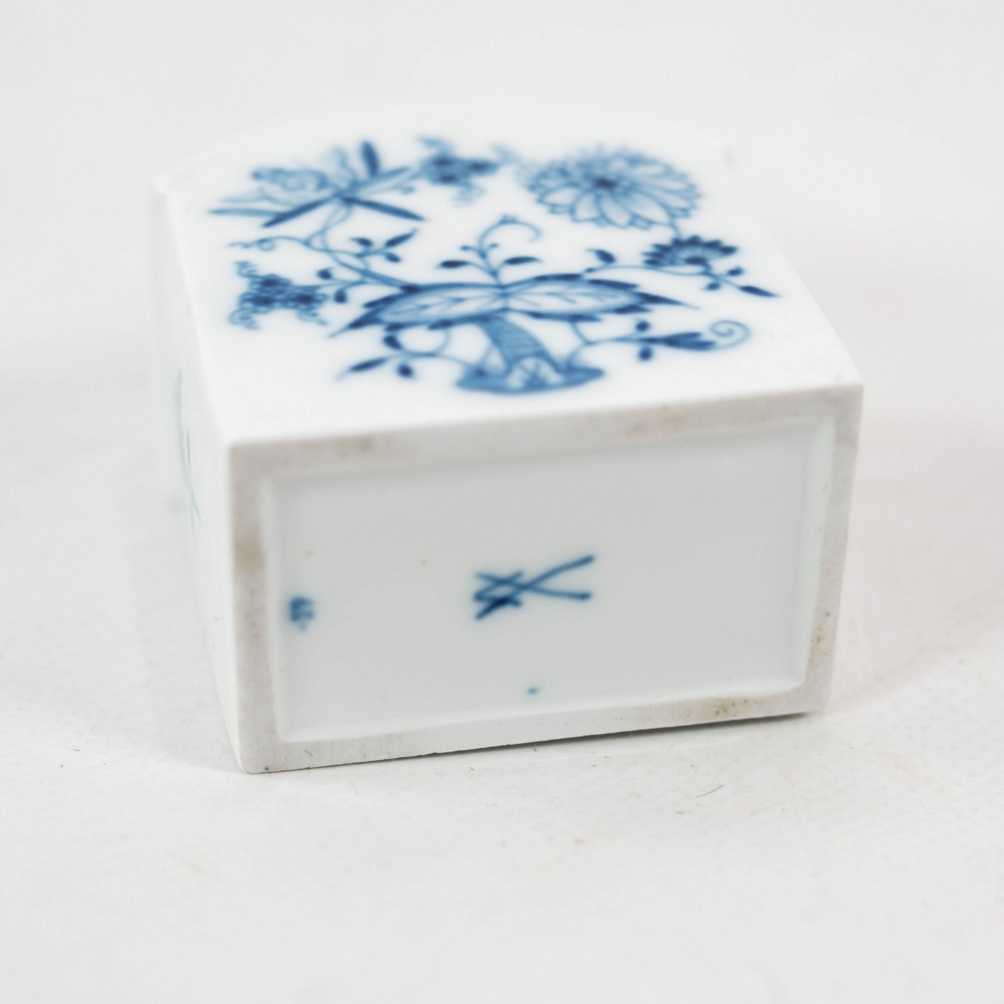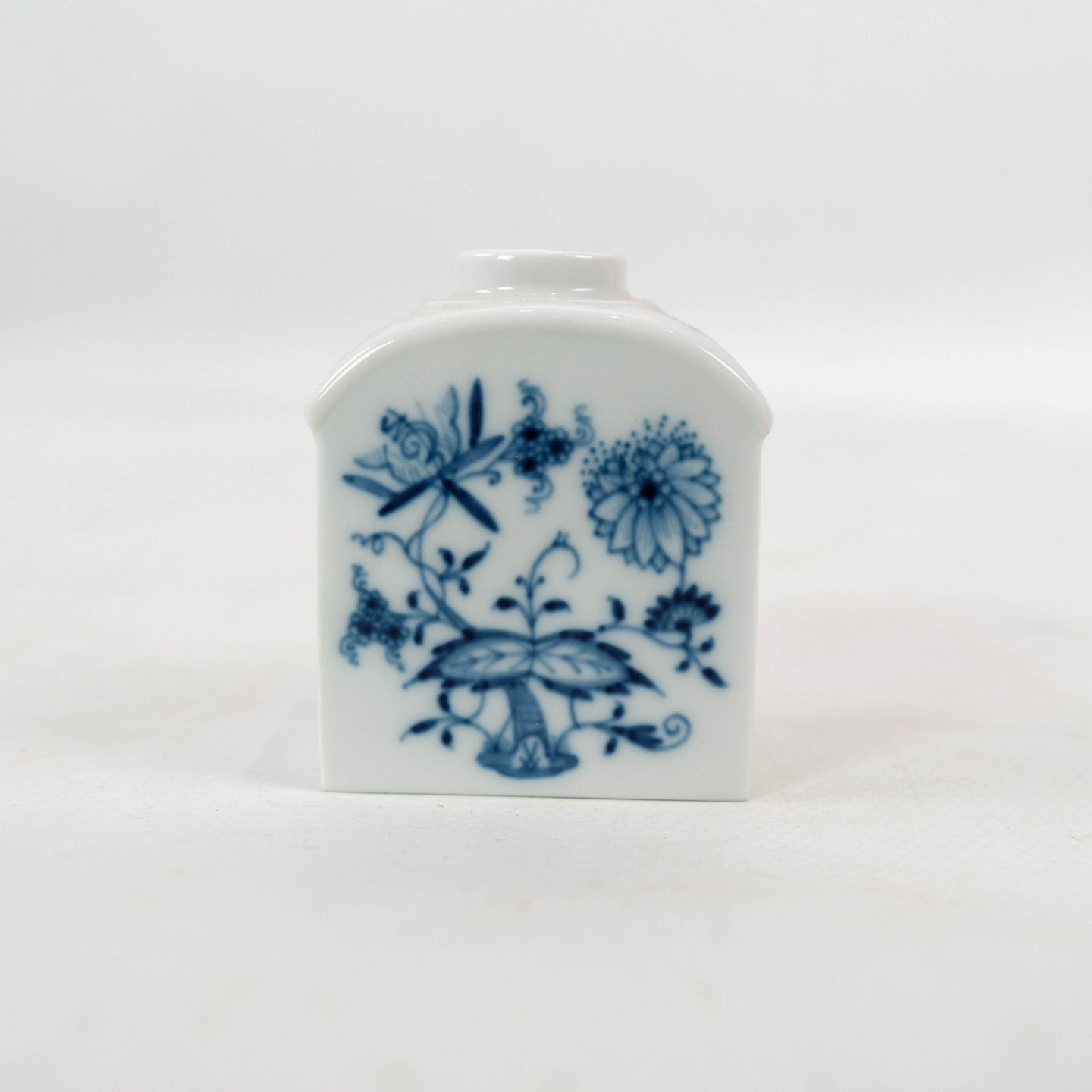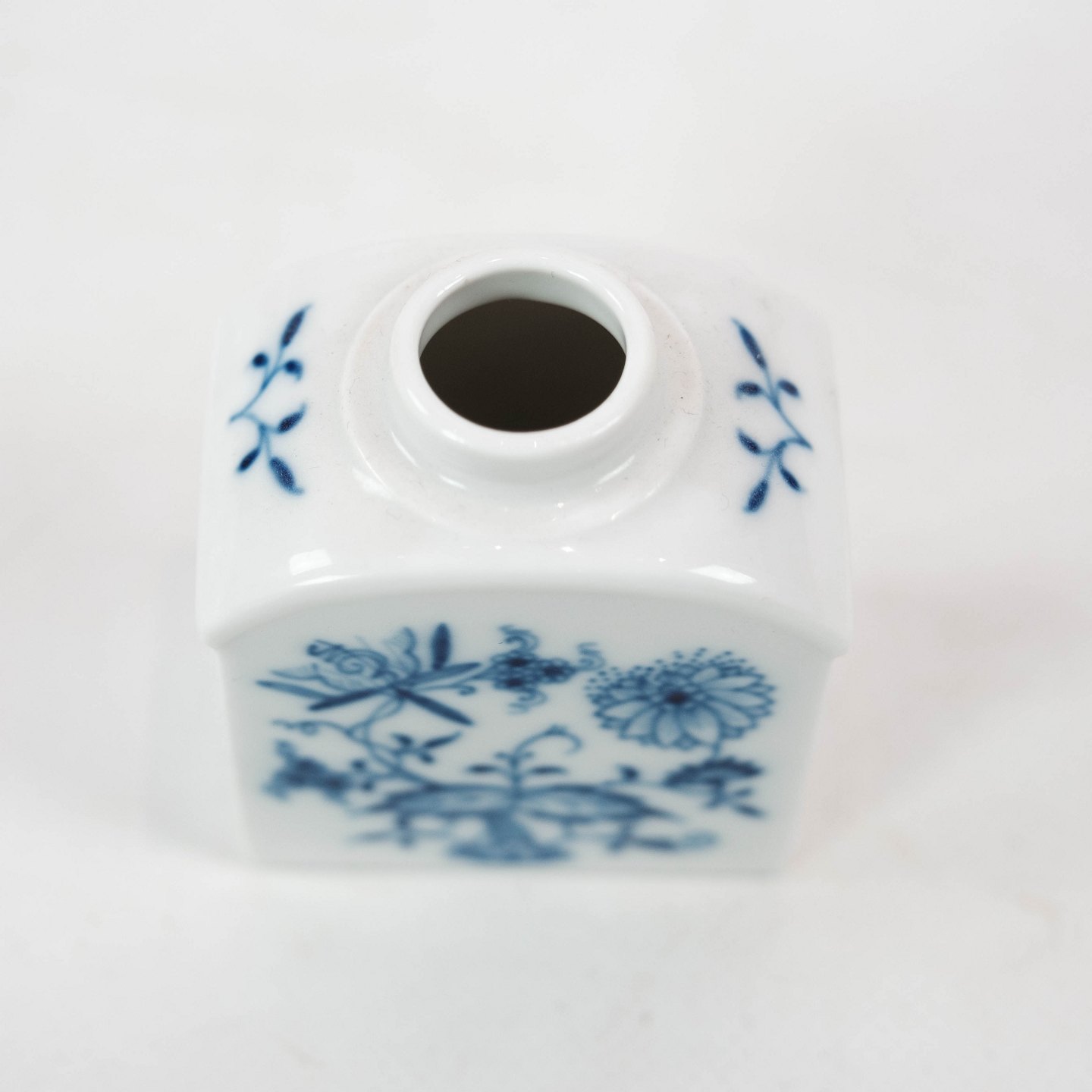 Tedåse af tysk Meisner porcelæn dekoreret med blåt mønster.