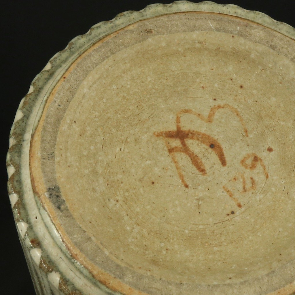 Stentøjskrukke med glasur udført hos Arne Bang (1901 - 1983). Stemplet AB.