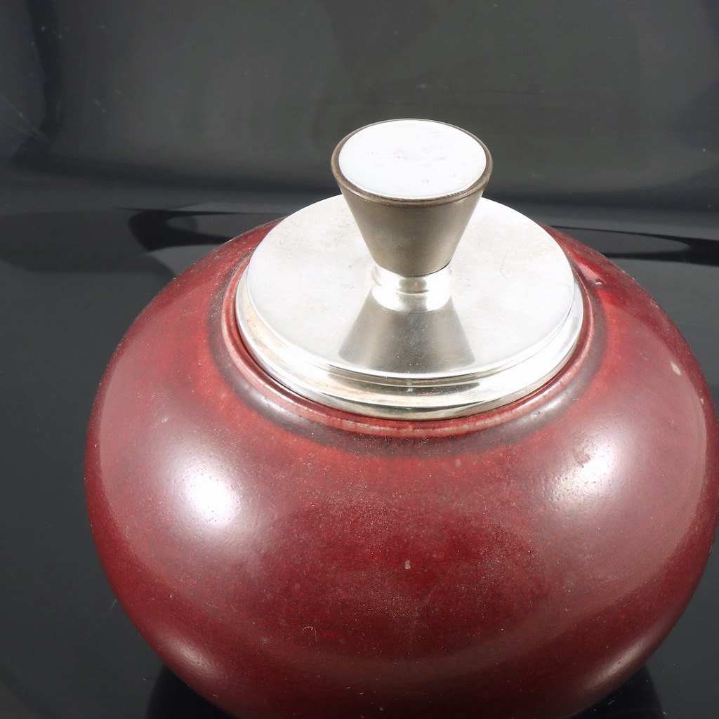 Art deco Låg i sterling sølv med bakelit håndtag designet af Svend Weihrauch (1899-1962) of udført hos F. Hingelberg in Aarhus, Denmark.