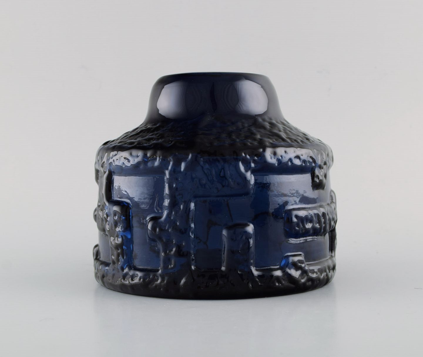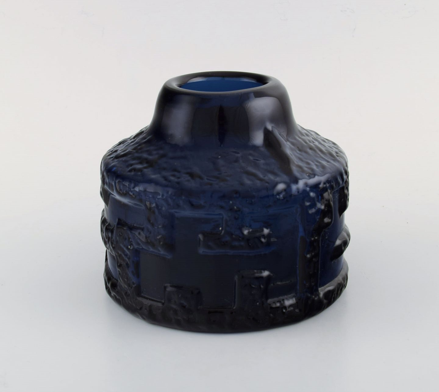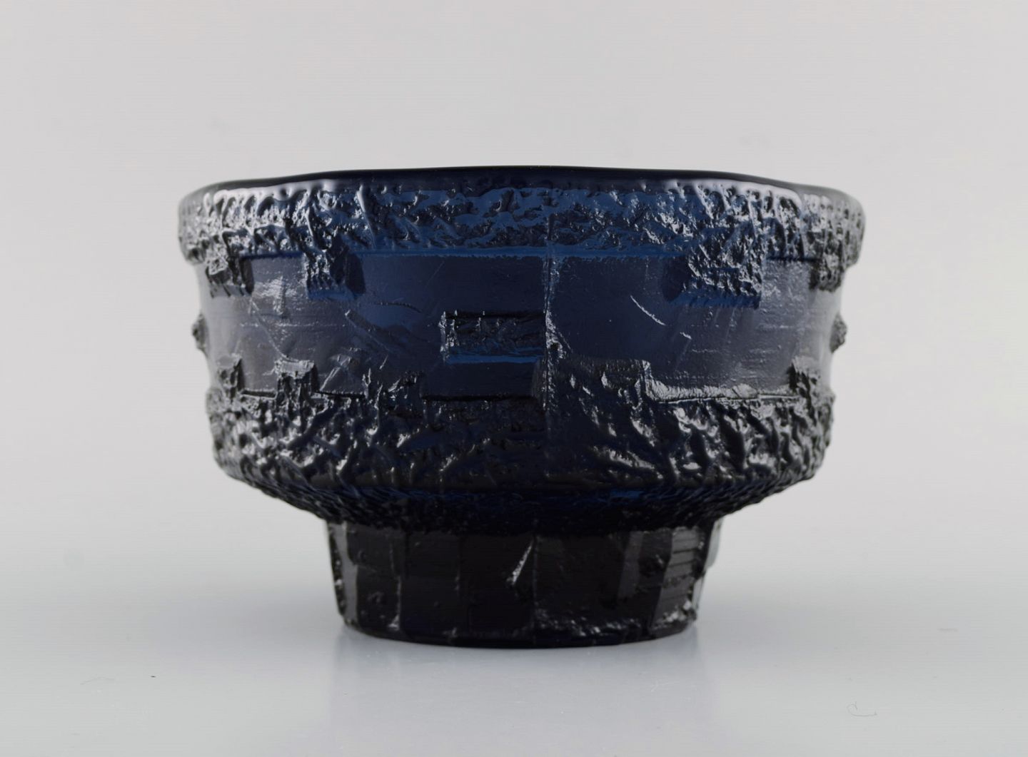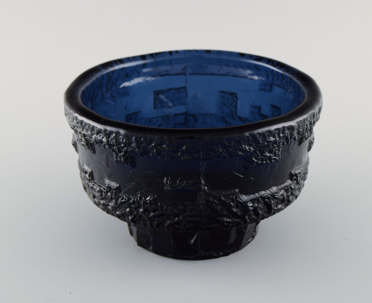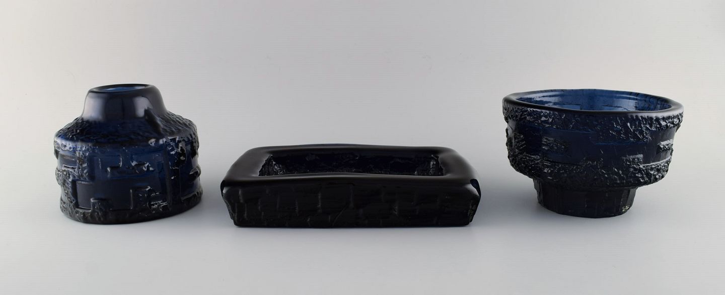 Göte Augustsson (1917-2004) for Ruda. Vase og to skåle i blåt mundblæst kunstglas. Svensk design, 1960'erne.