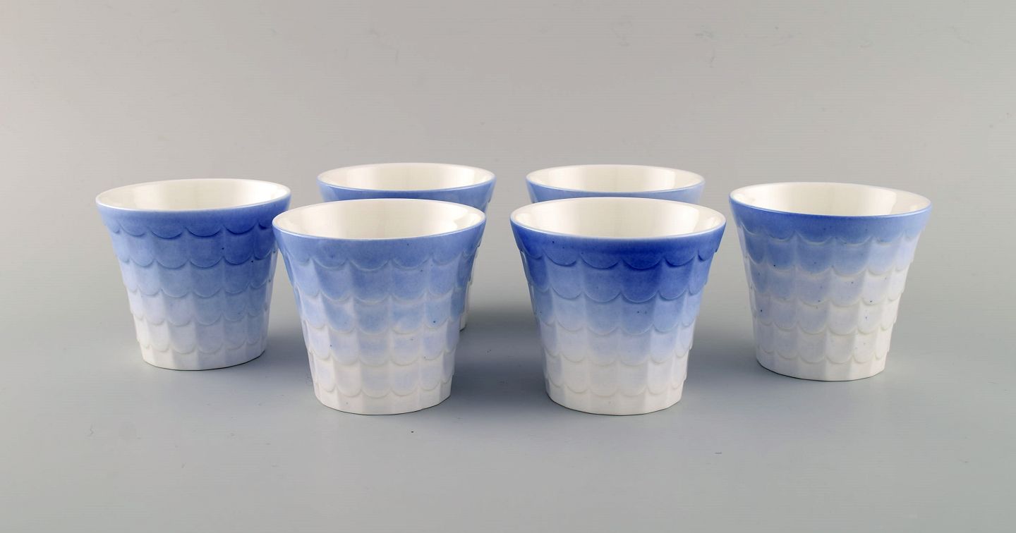 Wilhelm Kåge for Gustavsberg. Seks urtepotteskjulere i porcelæn. Svensk design, 1960'erne.