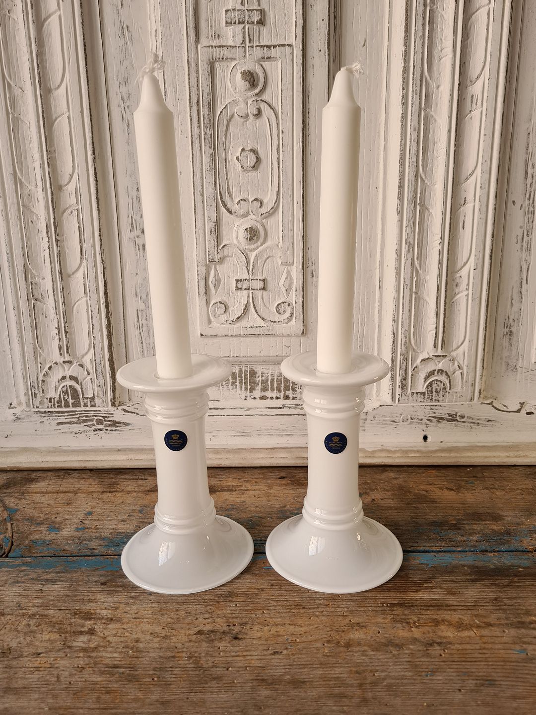 Holmegaard - Royal Copenhagen lysestager i hvidt mælkeglas af Michale Bang
