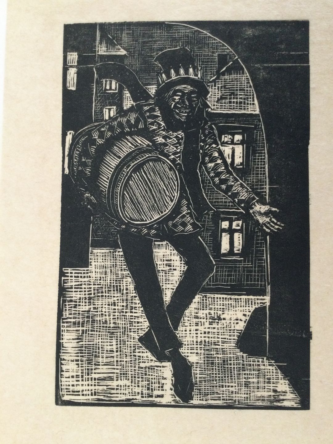 Træsnit af Povl Christensen - Illustration til H.C. Andersens "Tolv med posten"