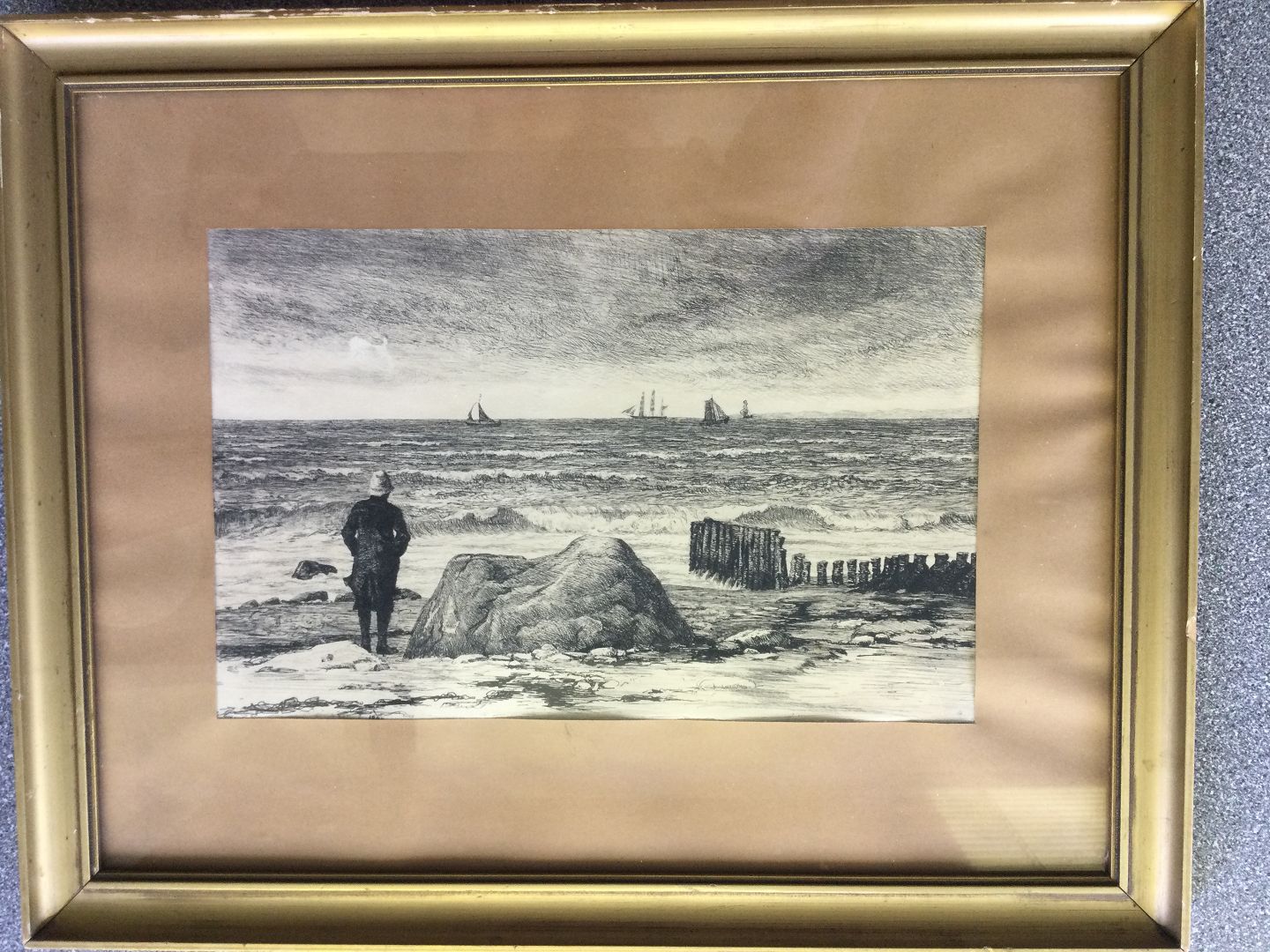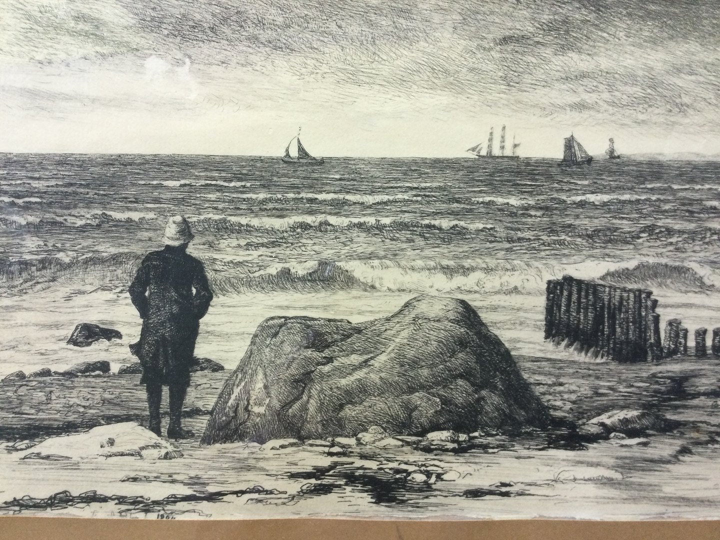 Radering 1884 af Carl Bloch - Blæsevejr, Søstykke.