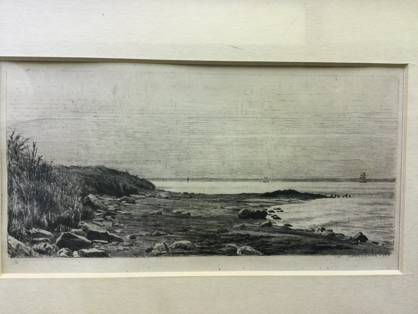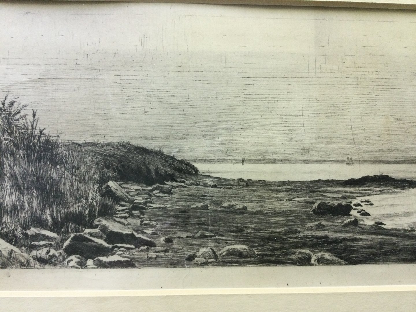Radering 1884 af Carl Bloch - Strandparti, solskin i havet.
