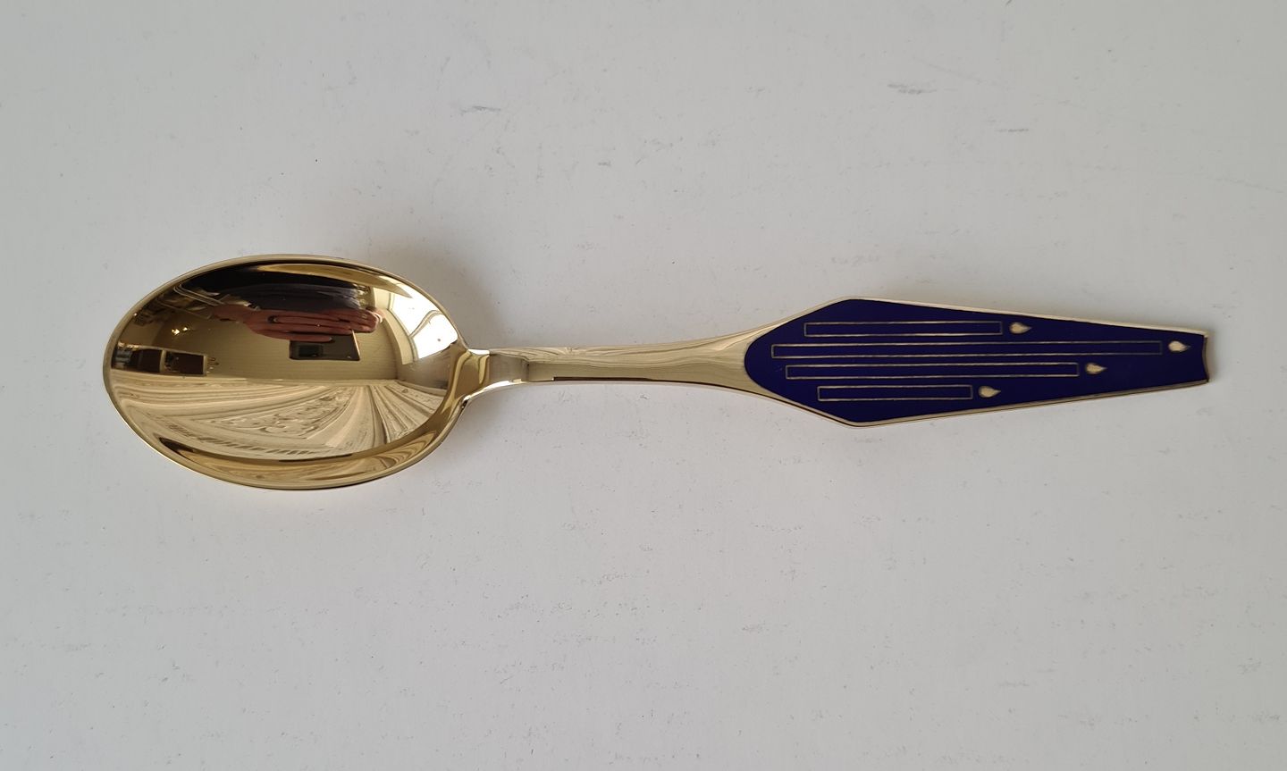 Sorenco juleske i forgyldt sterlingsølv dekoreret med julelys i emalje fra 1965.