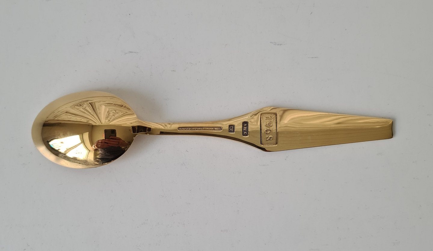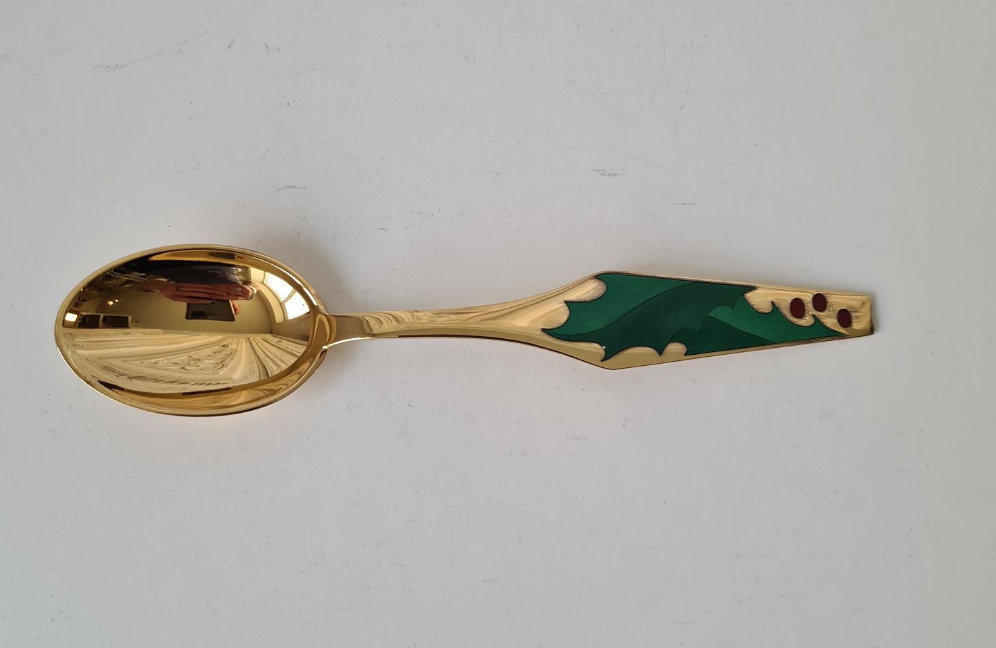 Sorenco juleske i forgyldt sterlingsølv dekoreret med kristtjørn i emalje fra 1968.