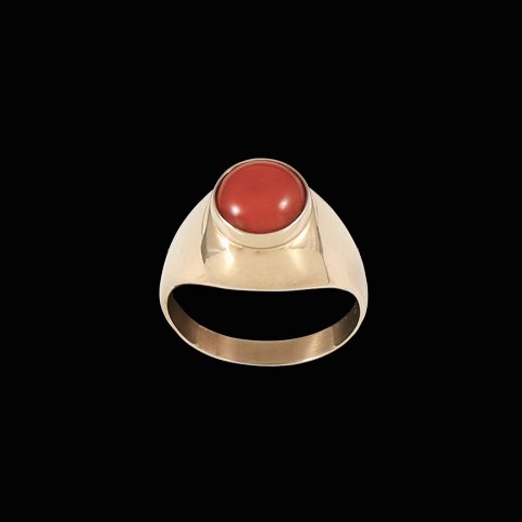 Jens J. Aagaard. Ring i 14k guld med koral. 1960erne.