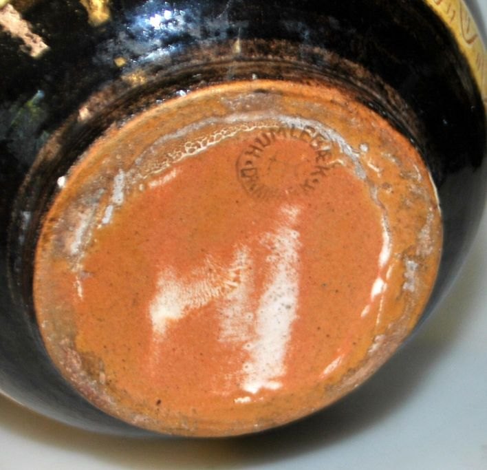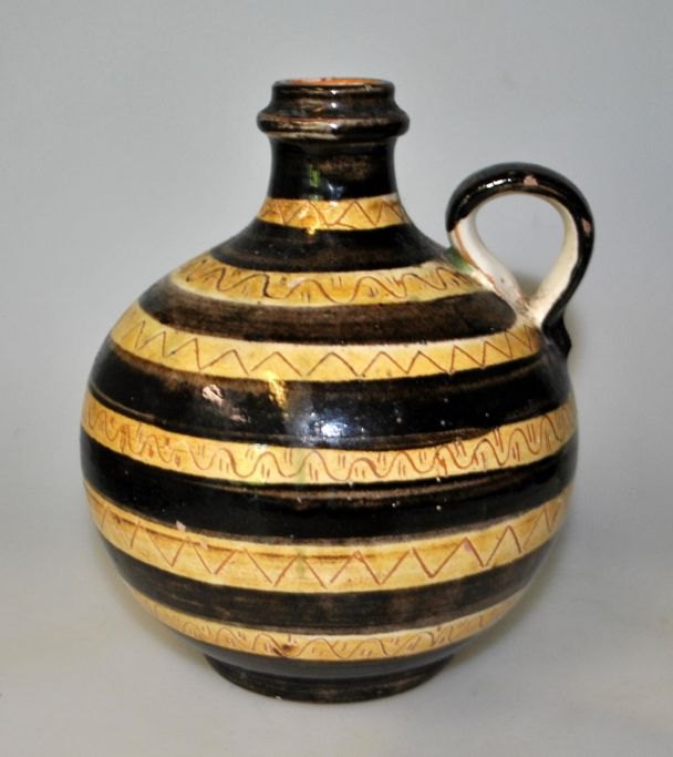 Humlebæk kande, 20. årh. Danmark. Med gule og brune glasurer.