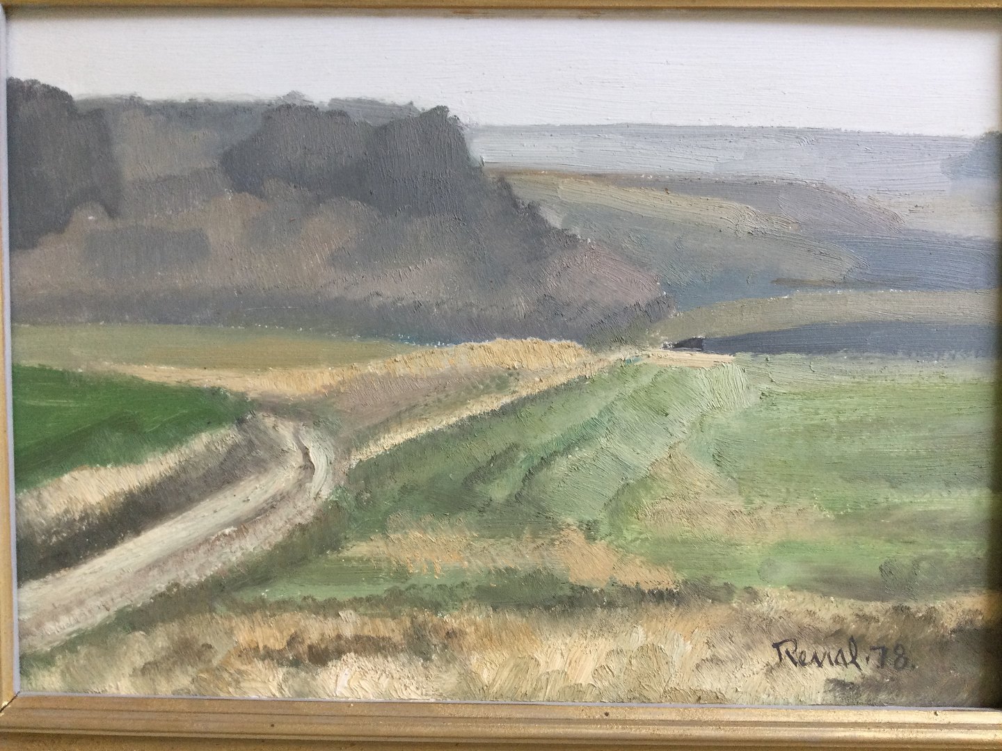 Maleri af Renal Bache - Landskab ved Nøvling 1978.