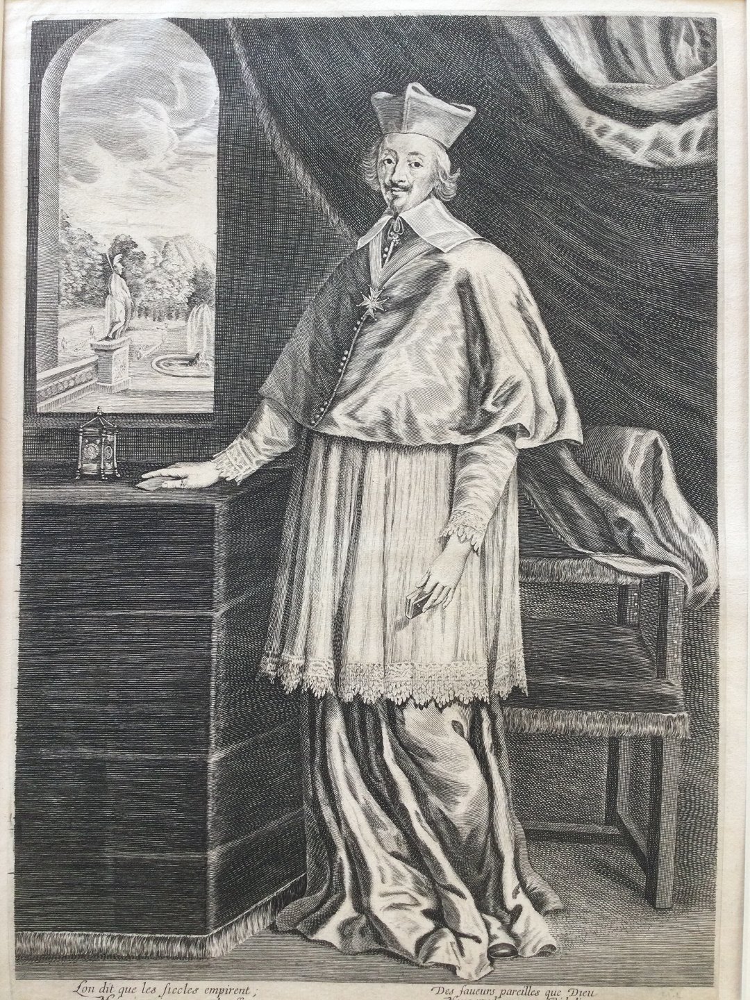 Kobberstik af René Guérineau - Portræt af Armand Jean du Plessis de Richelieu.