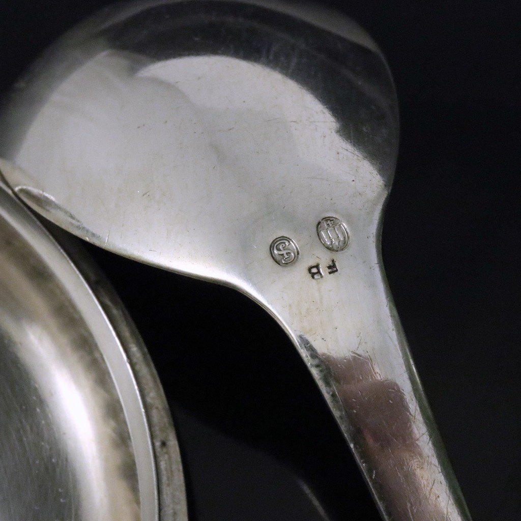 Låg og ske i sølv tegnet og udført hos Frithjof Bratland - Copenhagen 1956 - 1973.