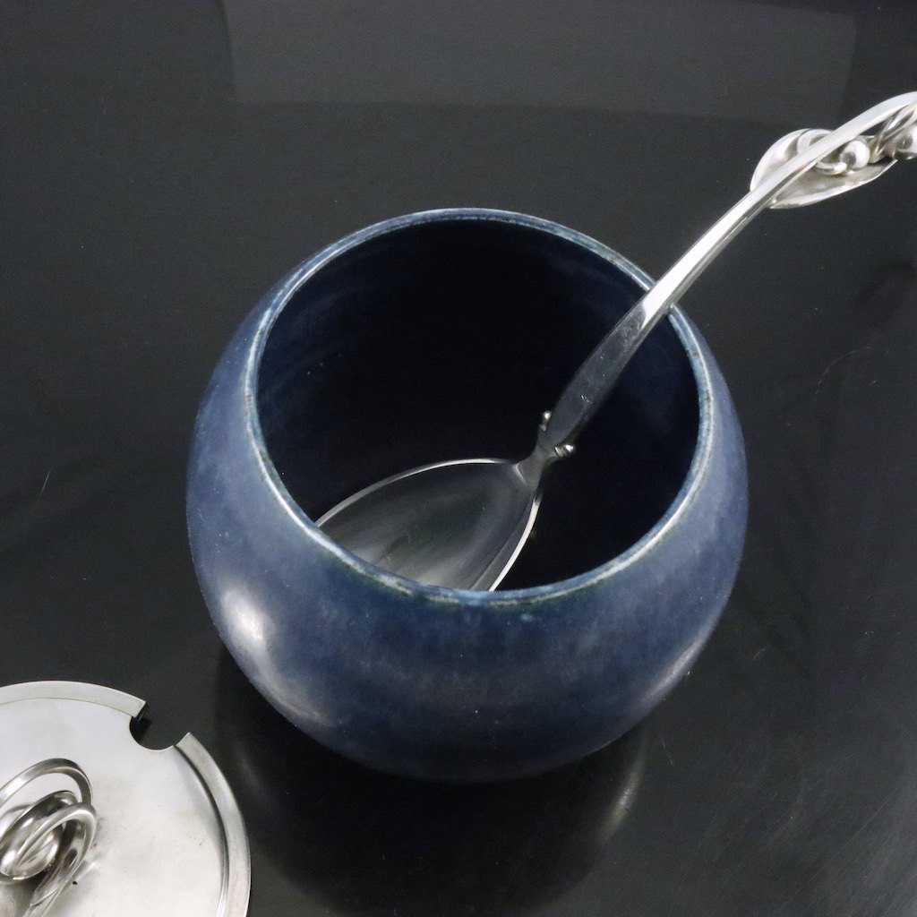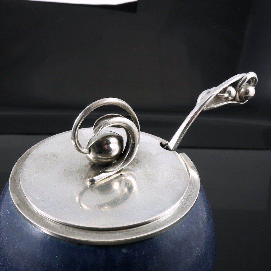 Saxbo - Hugo Grün. Stoneware Jar with Silver Lid and Spoon.