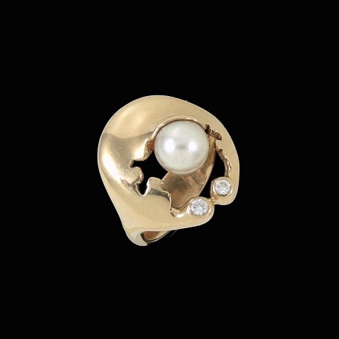 Johan Torp. Ring i 14k guld med perler og diamanter. 0.06ct