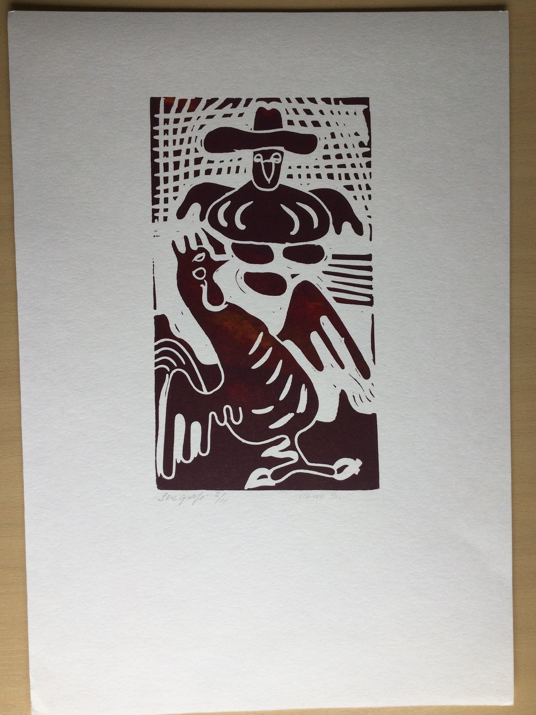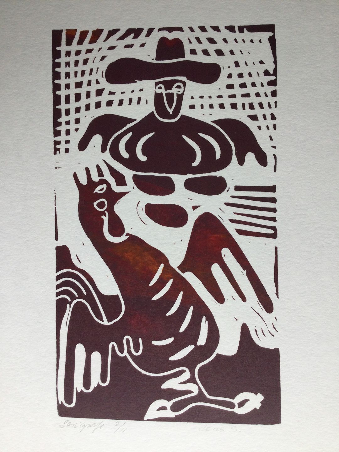 Serigrafi af Jens Sørensen - Komposition med kok.