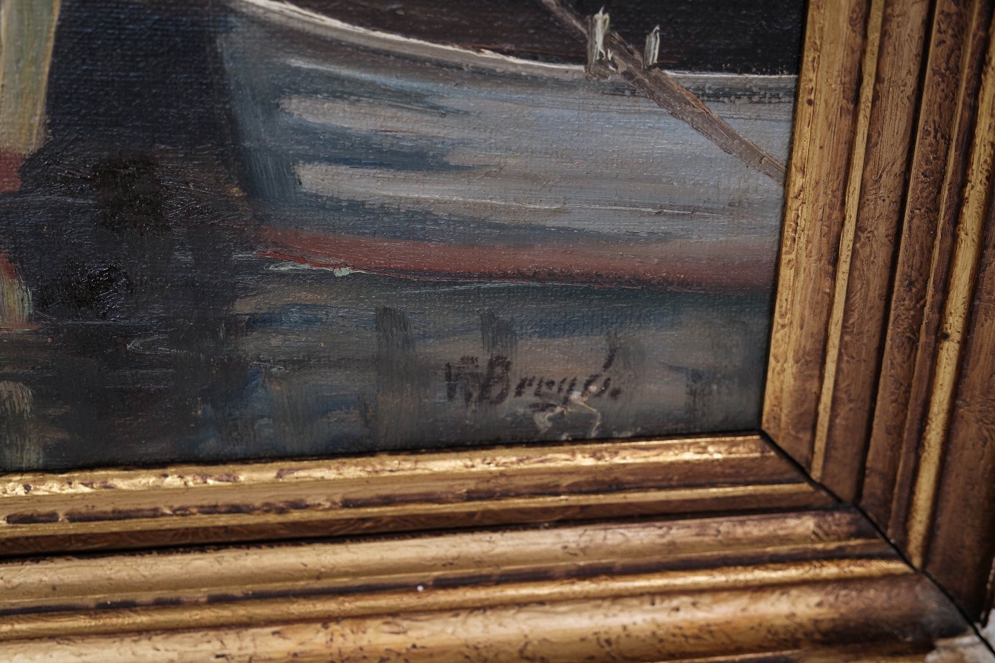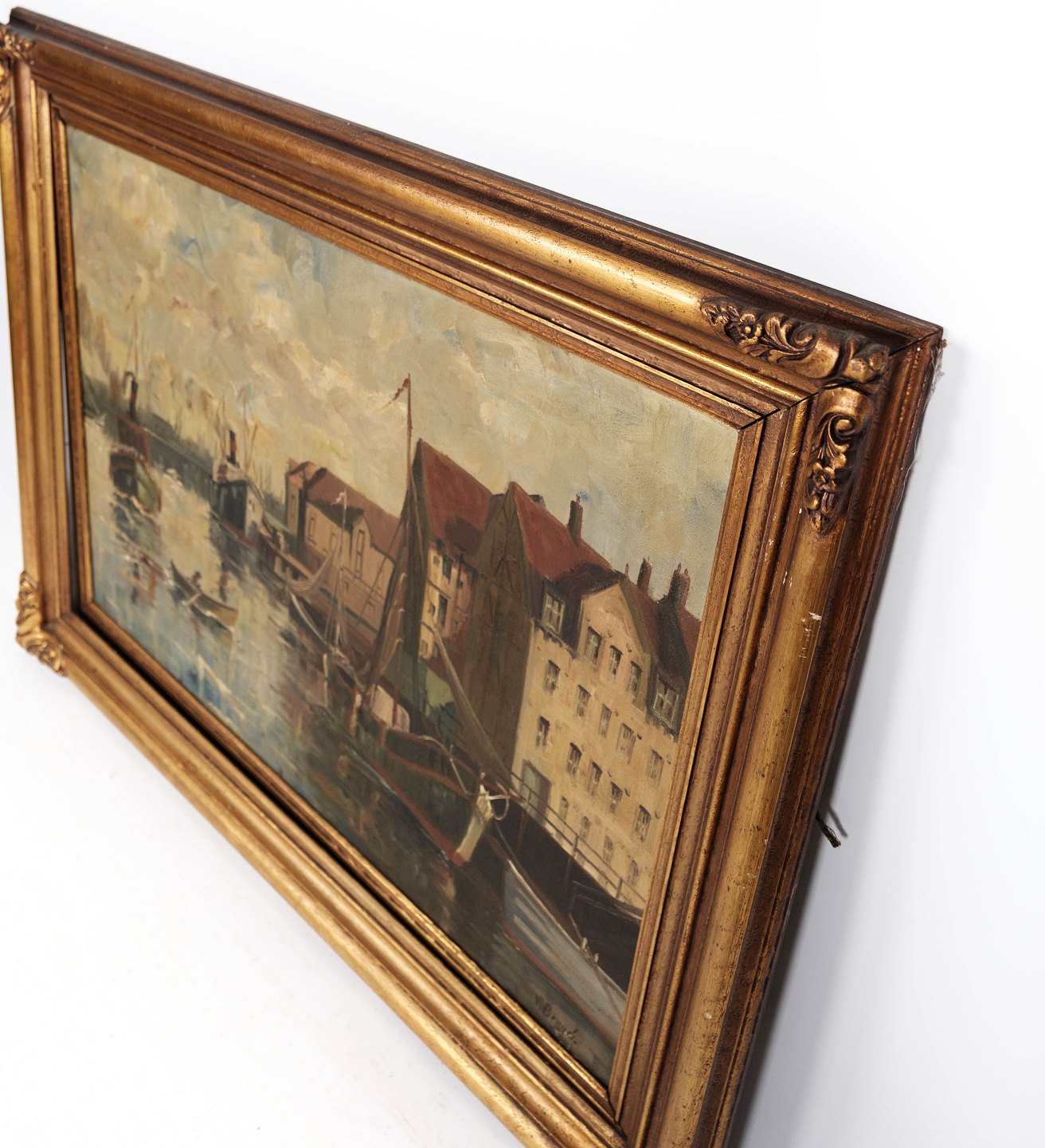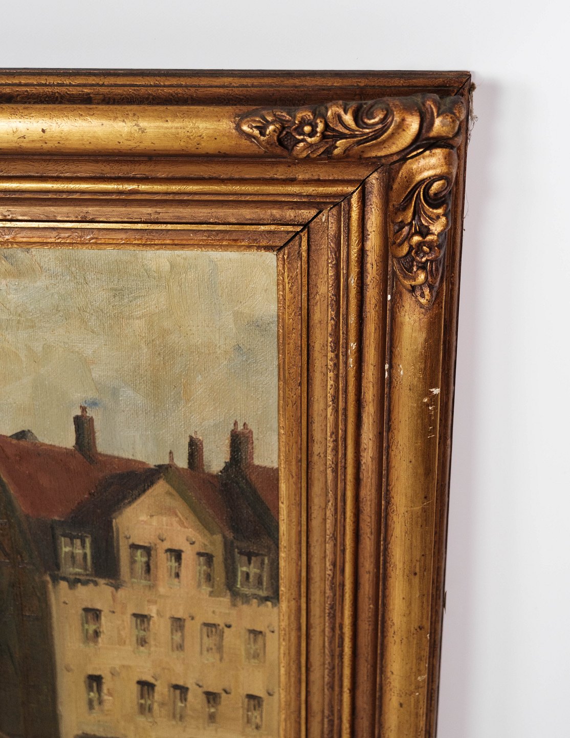 Oliemaleri med motiv af København og forgyldt ramme, signeret Valdemar Brunø.
