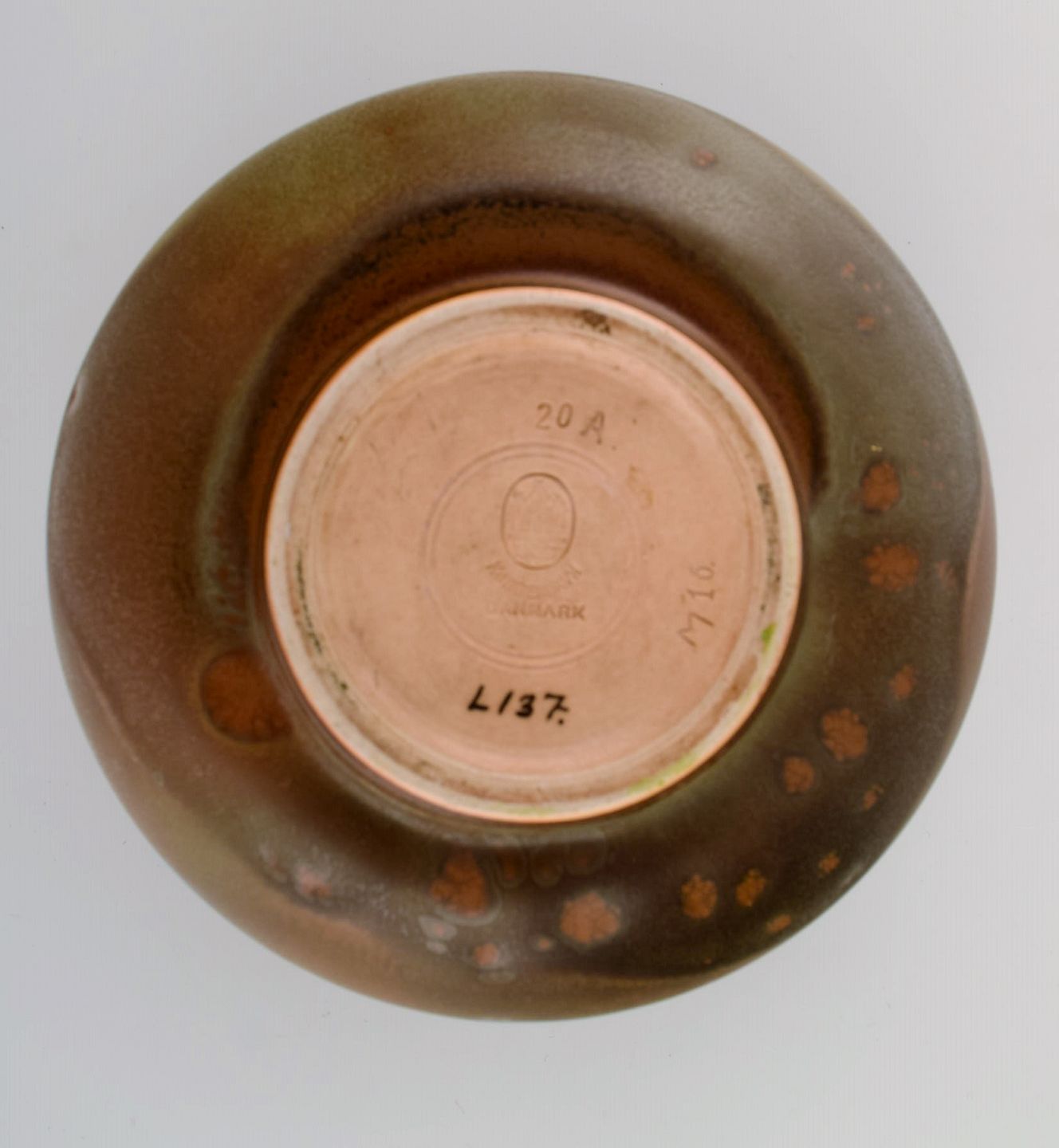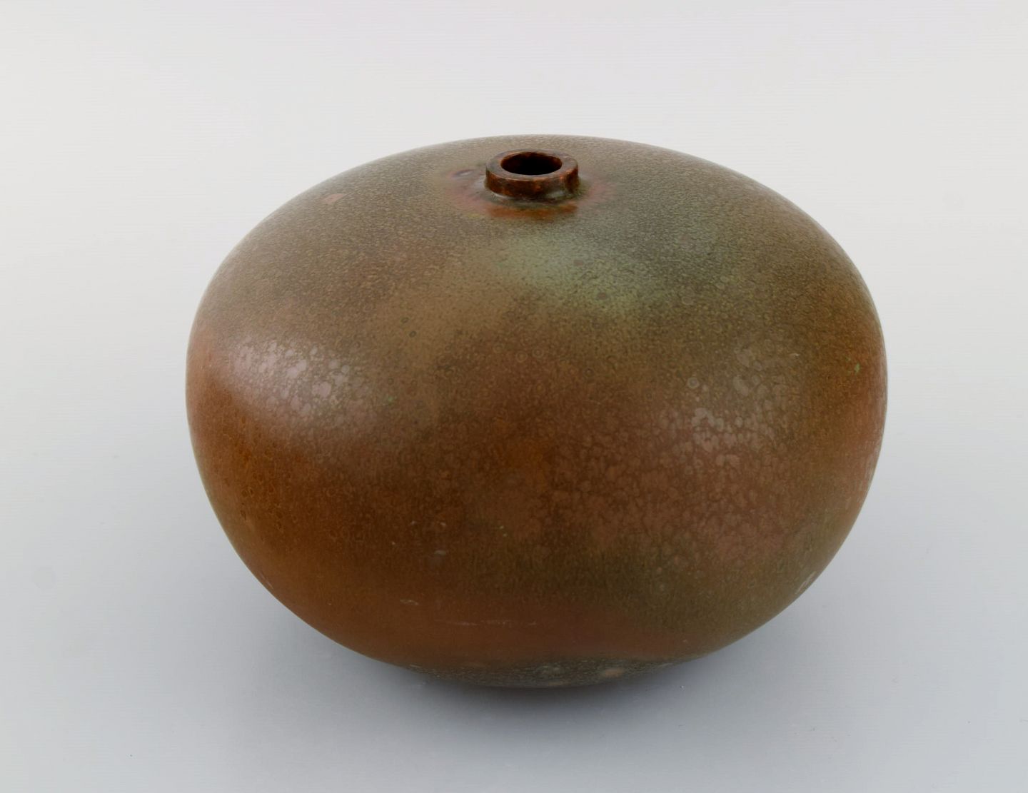 Rund Bing & Grøndahl vase i glaseret stentøj. Smuk glasur i jordnuancer. 1920/30'erne.