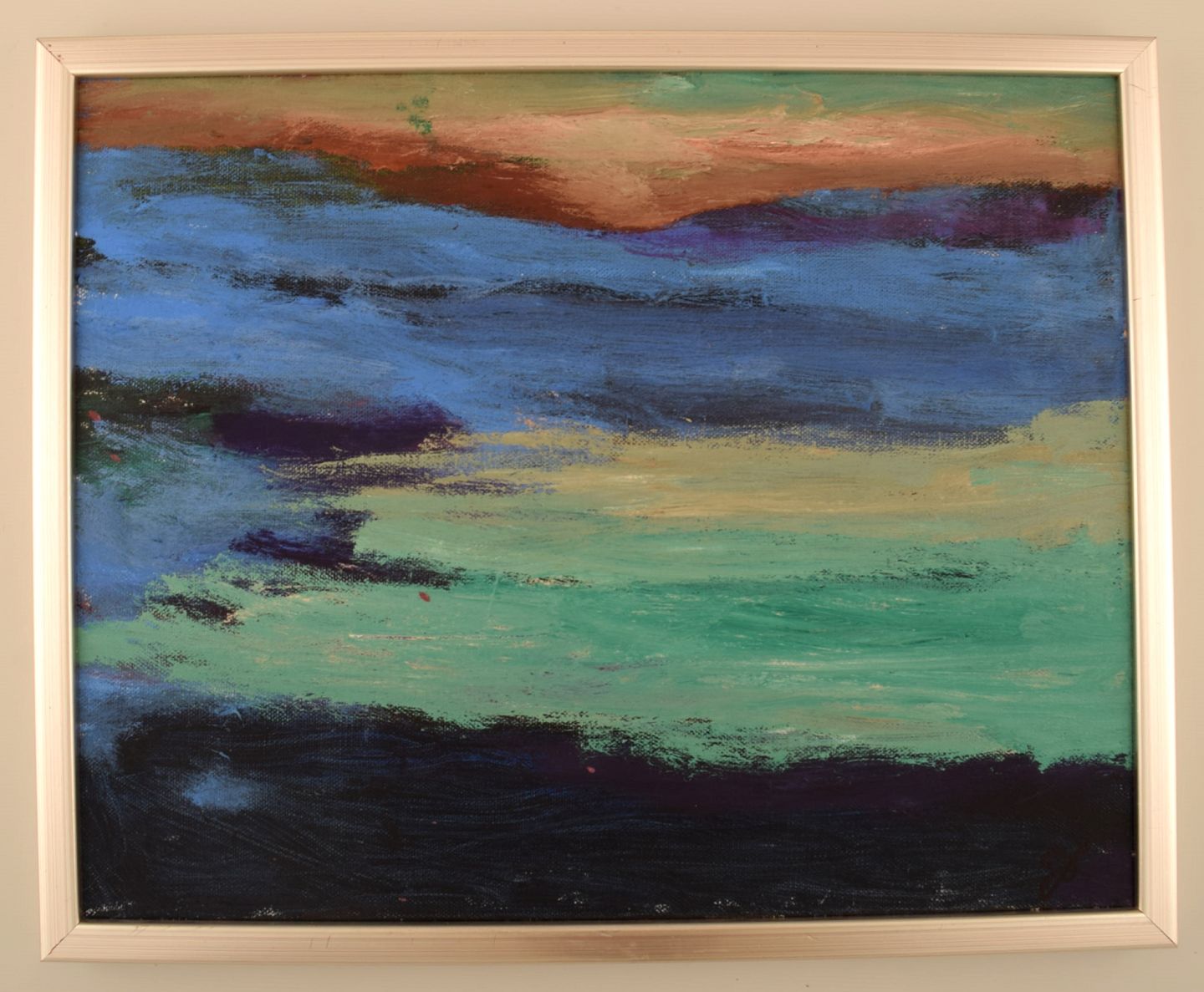 Skandinavisk kunstner. Olie på lærred. Abstrakt komposition. 1980'erne.