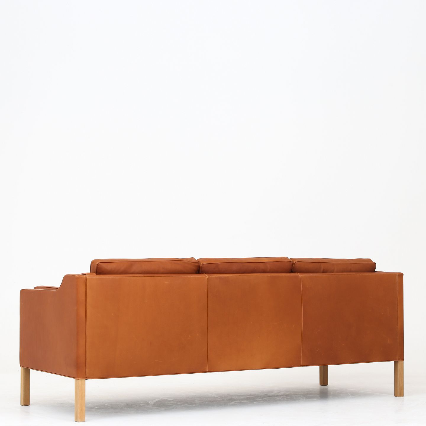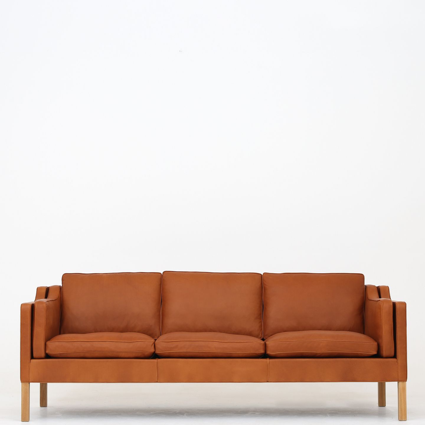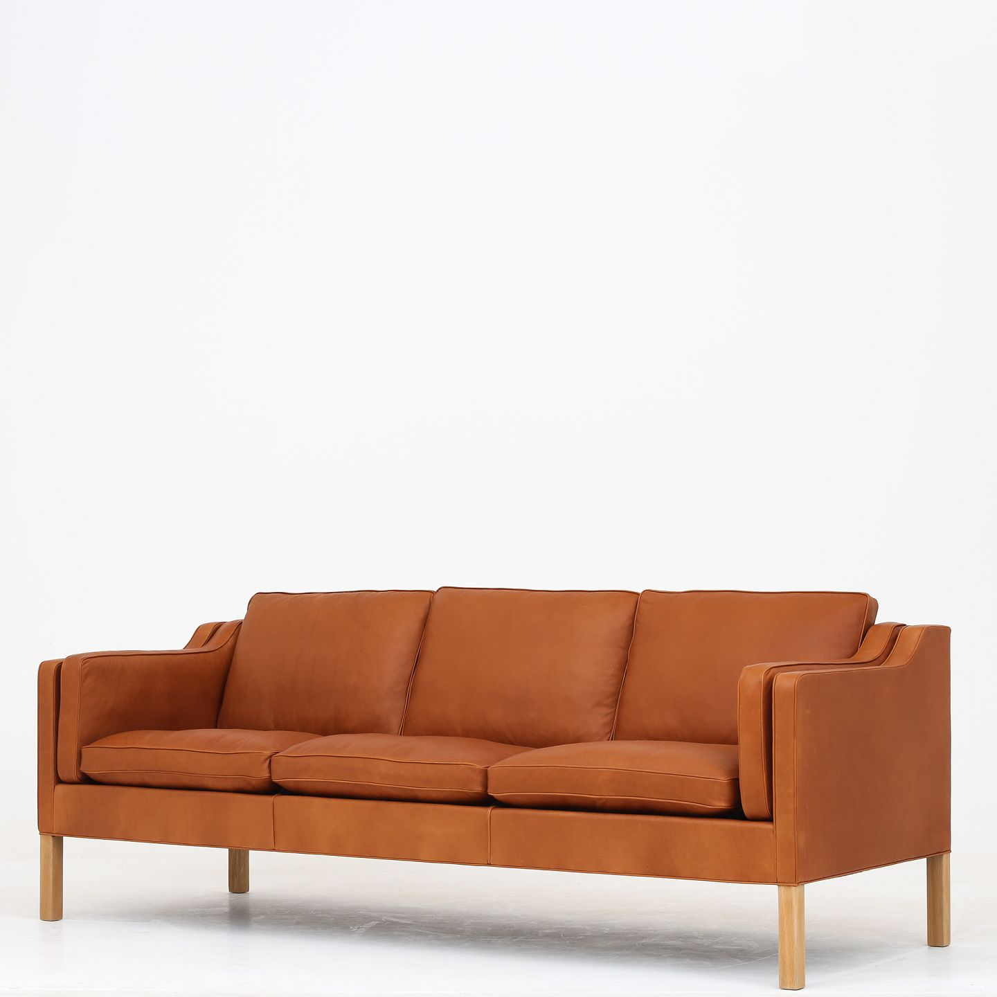 BM 2213 - Nybetrukket 3 pers. sofa i Klassik Cognac-læder med ben i eg.
