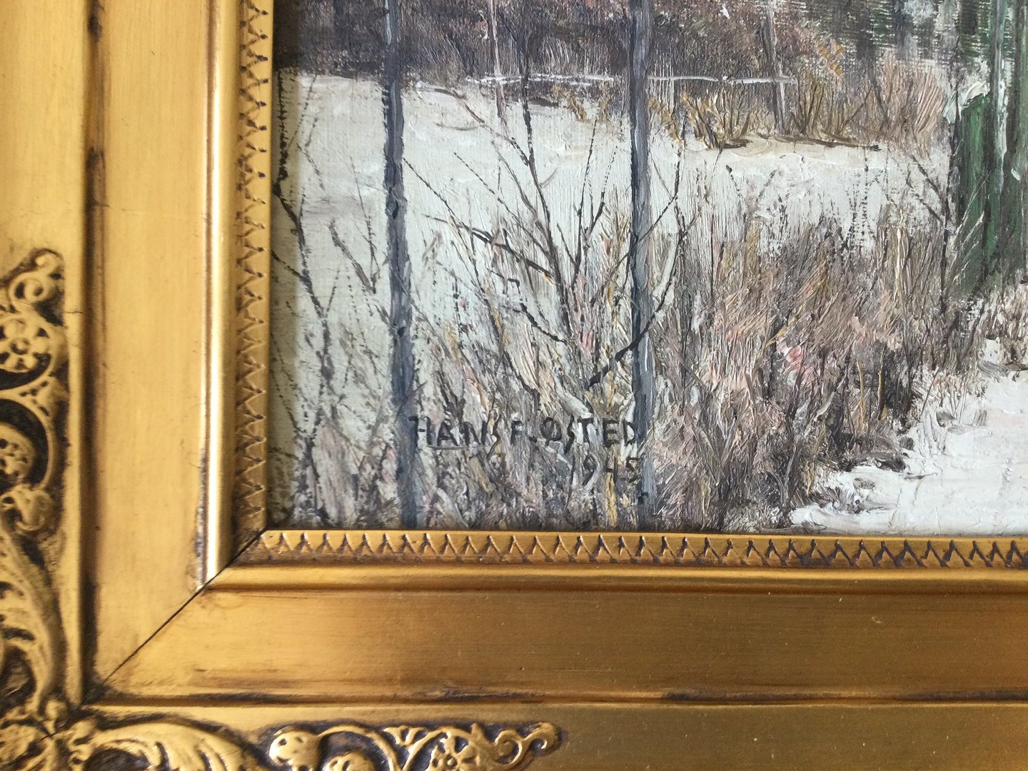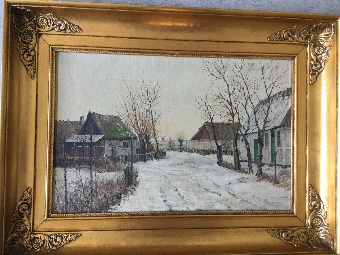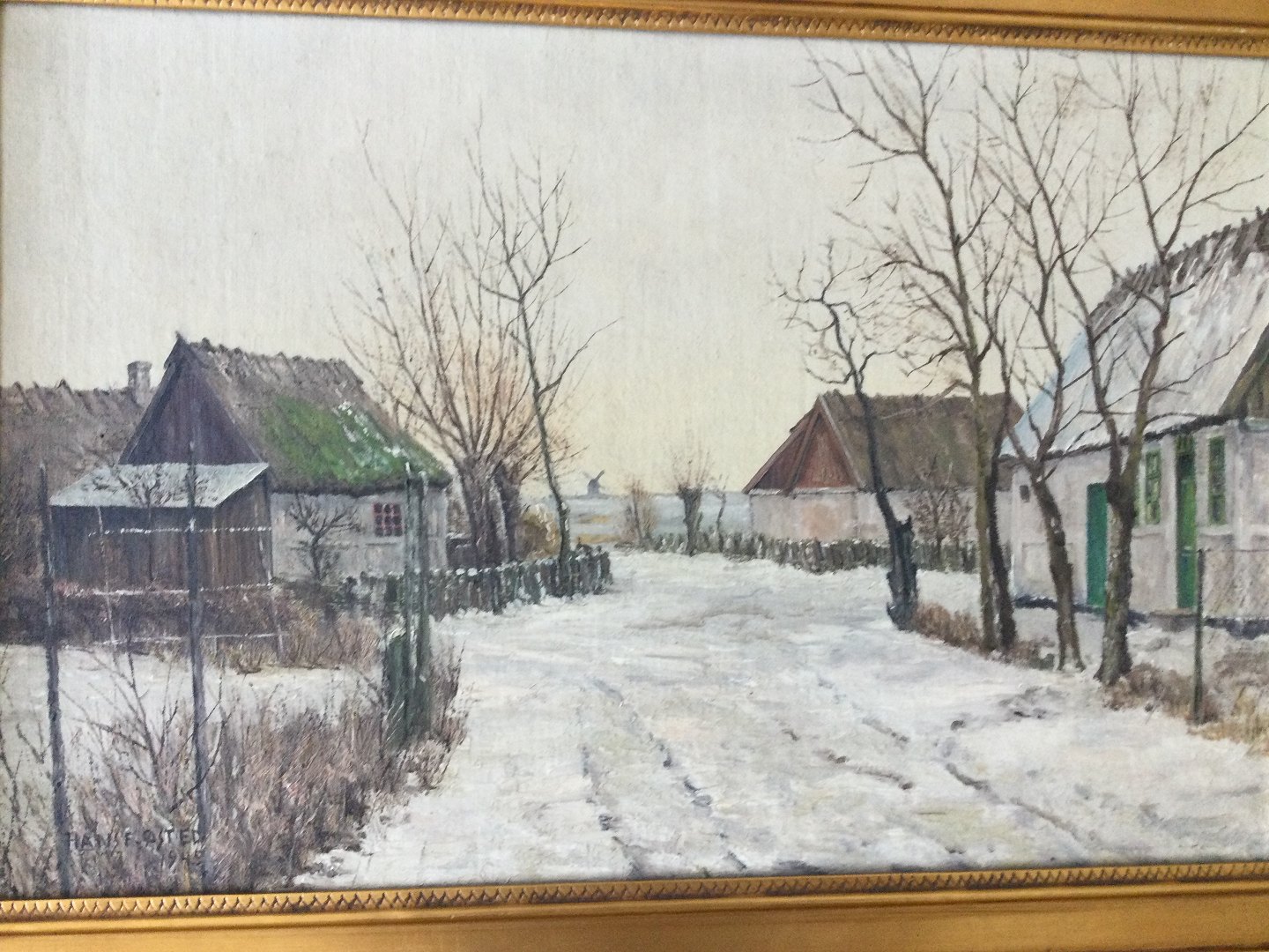 Maleri af Hans F. Østed - Vinterparti fra Enegårde 1945.