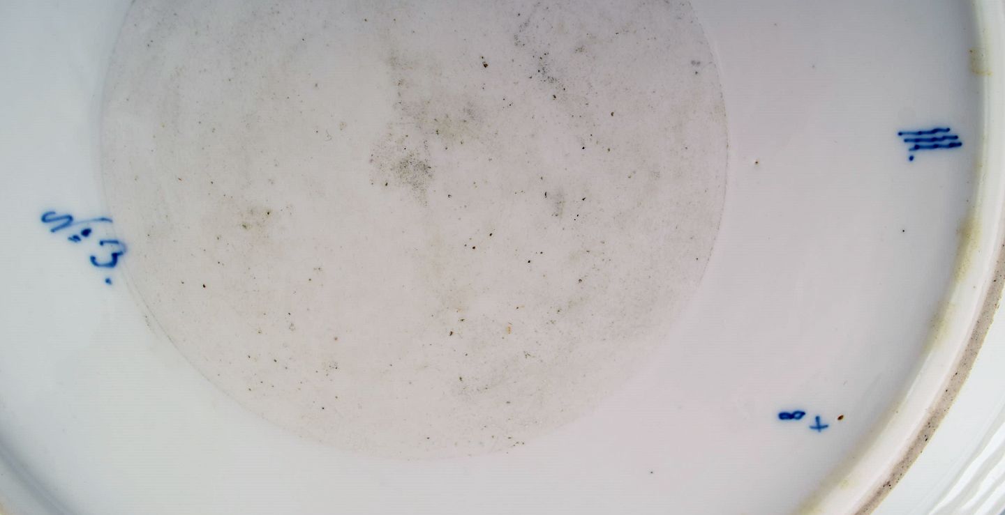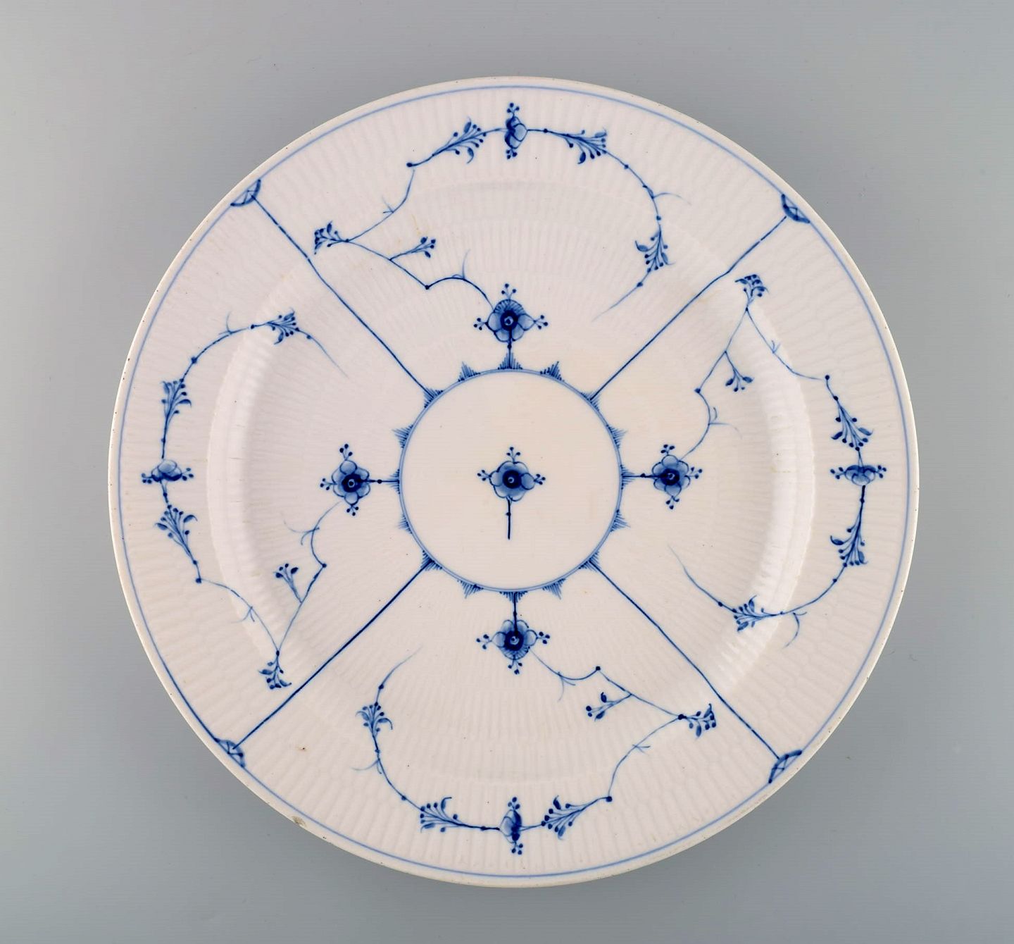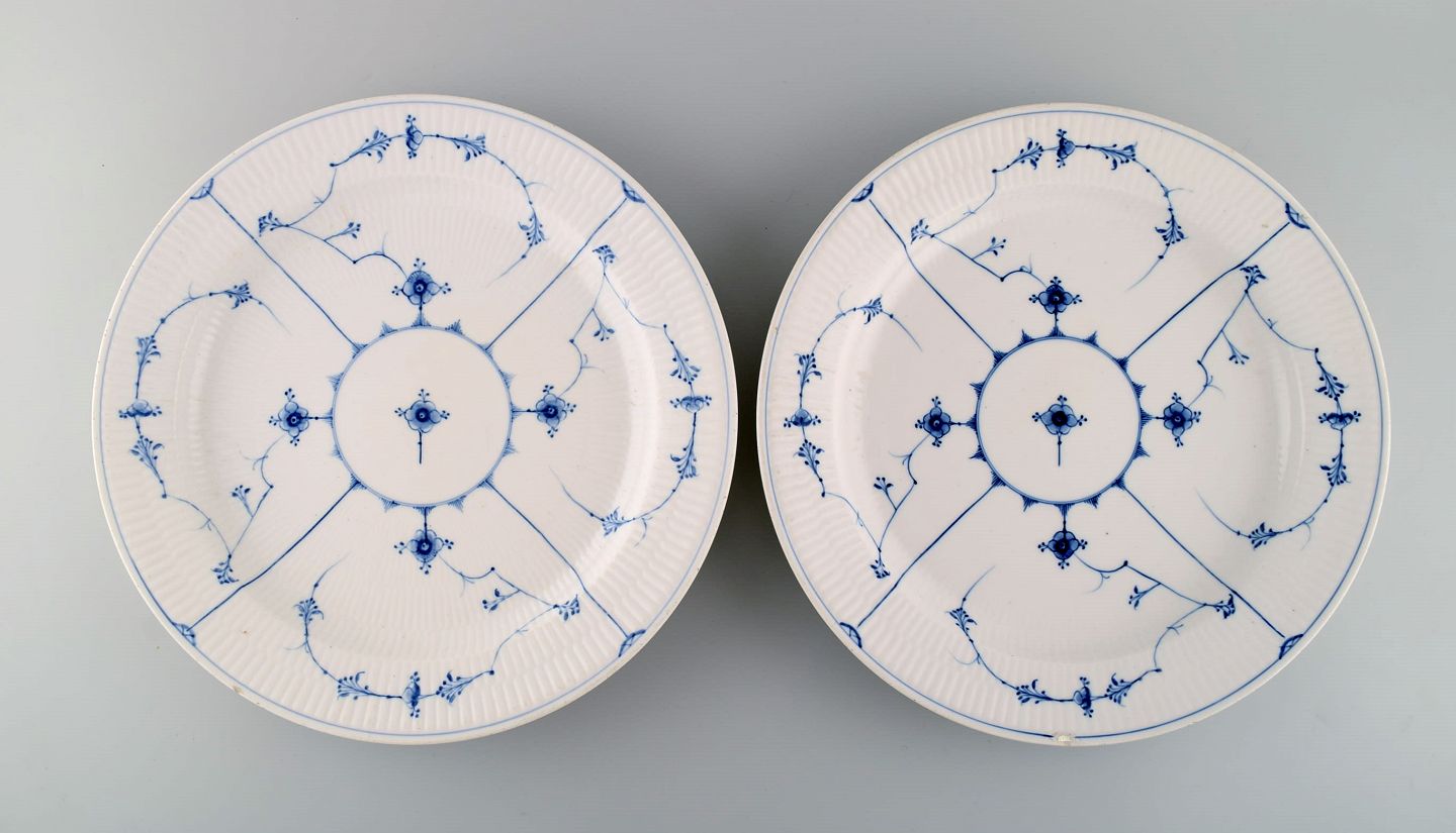 To antikke Royal Copenhagen Musselmalet Riflet serveringsfade. Tidligt 1800-tallet.