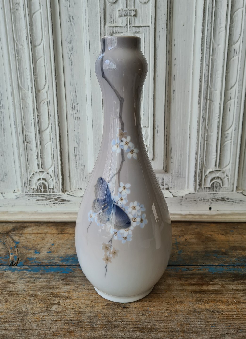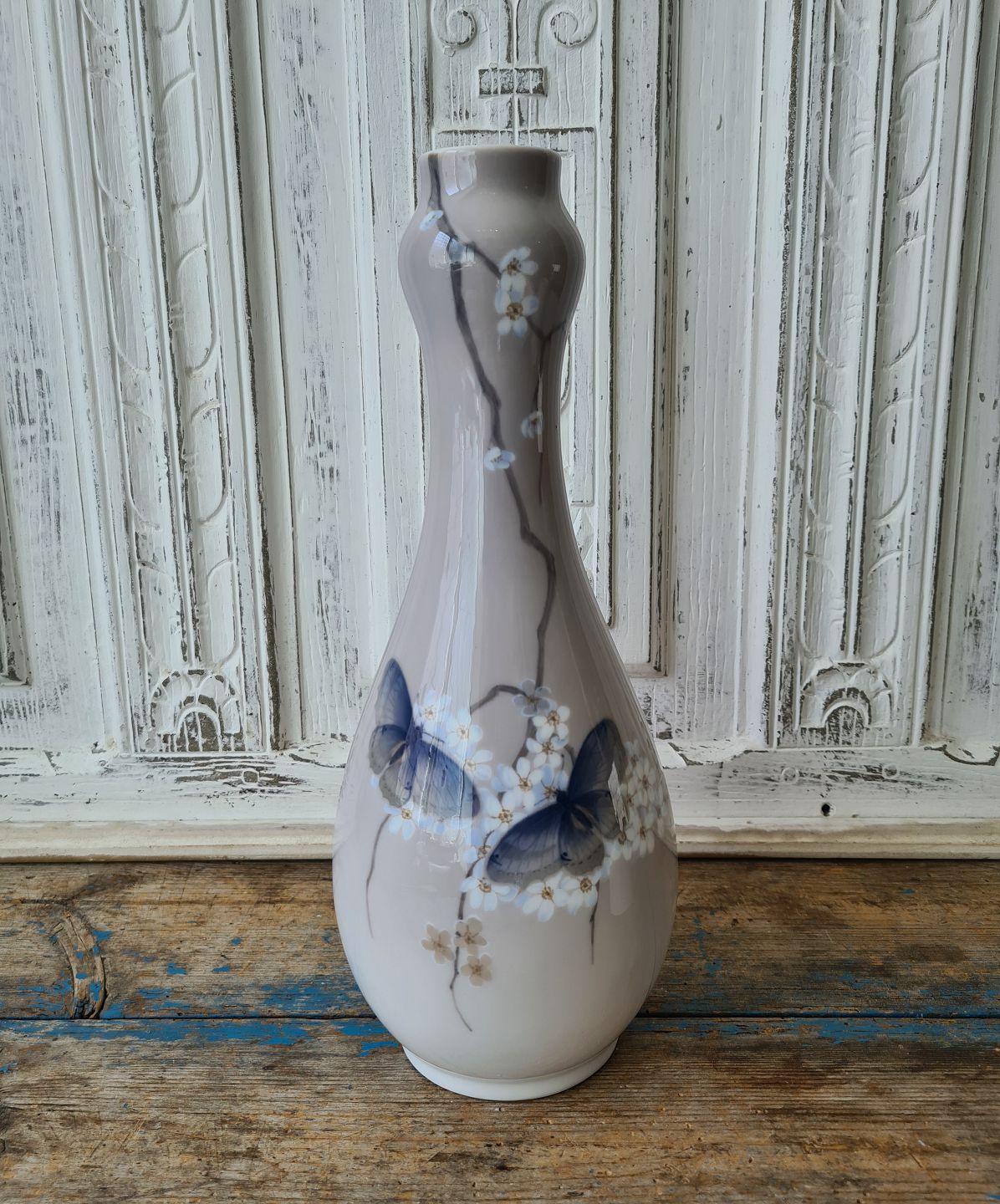 Royal Copenhagen stor Art Nouveau vase dekoreret med sommerfugle og blomster